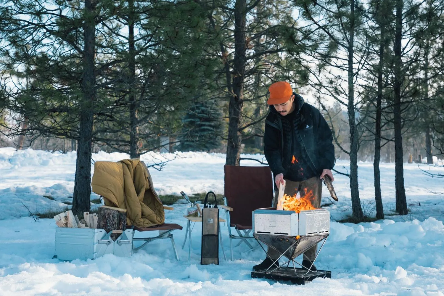 Складное приспособление для вашего камина Snow Peak Large Pack & Carry (не входит в комплект), Takibi Floga создает вторичное сгорание для более эффективного, жаркого пламени и меньшего количества дыма.