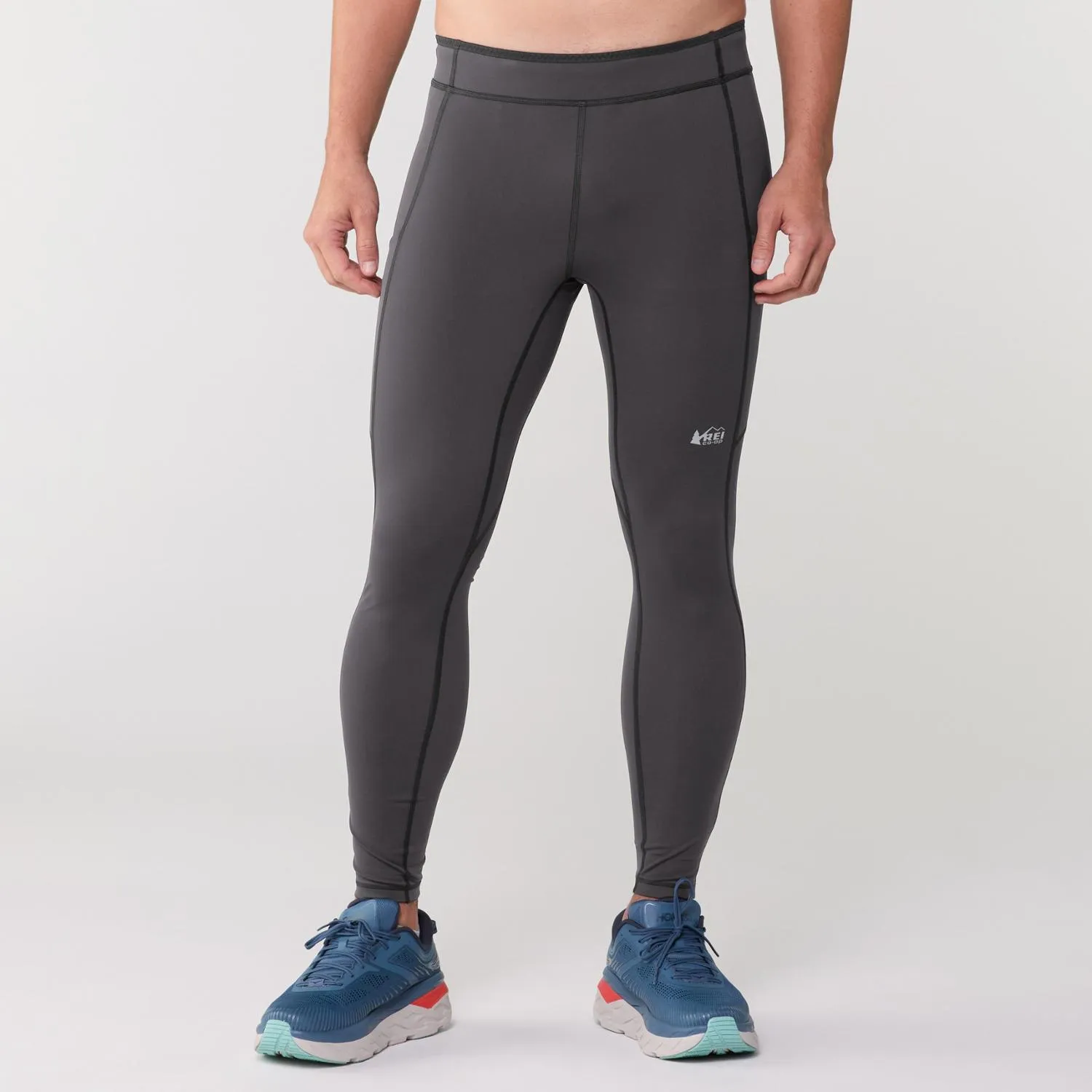 Зарядитесь энергией, бегите далеко. Прочные и эластичные мужские беговые лосины REI Co-op Swiftland удерживают ваш телефон и энергетические закуски в компрессионных карманах, которые не мешают вашему шагу.