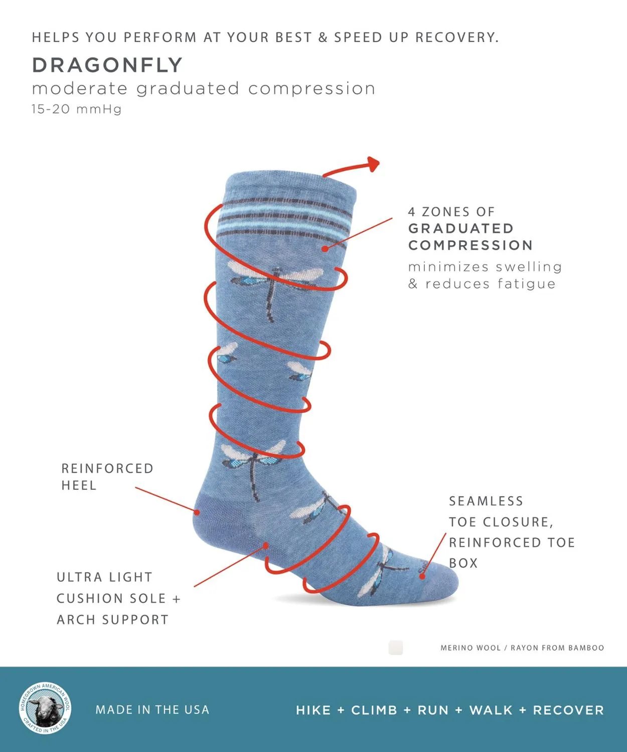 С модератнойGraduated компрессией женские компрессионные носки Sockwell Dragonfly повышают комфорт во время продолжительного сидения, стояния, полетов или физических упражнений.