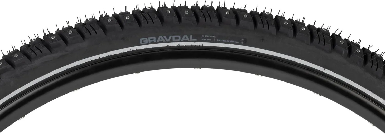 Универсальная и внушающая доверие шина 45NRTH Gravdal с проволочной bead надежно справляется с суровыми зимними условиями. Ее вогнутые карбидные алюминиевые шипы повышают сцепление на ледяных дорогах.