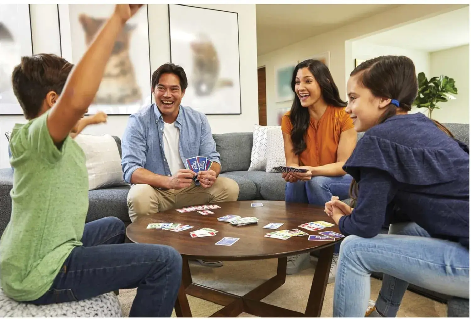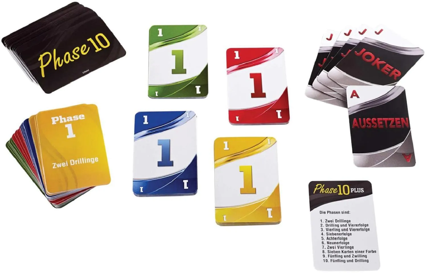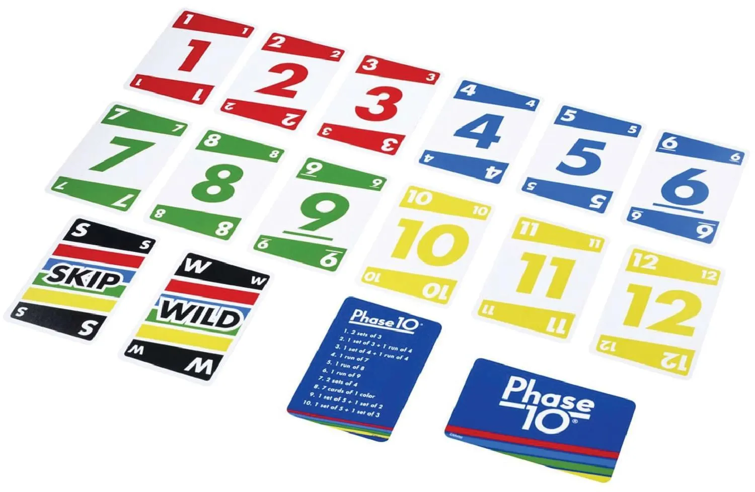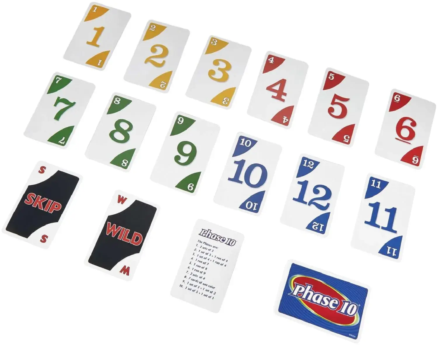 Веселая карточная игра для всей семьи, Фаза 10 от Mattel — это извращенная игра в румми с картами "Дикого" и "Пропуска", которые изменяют ход игры и добавляют эмоции.