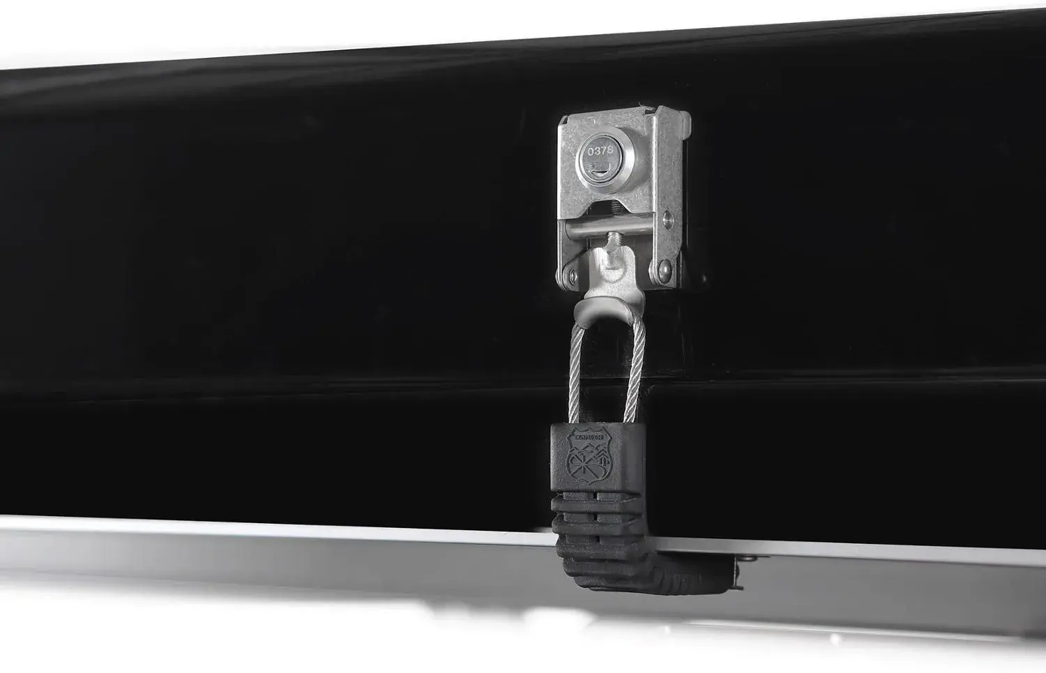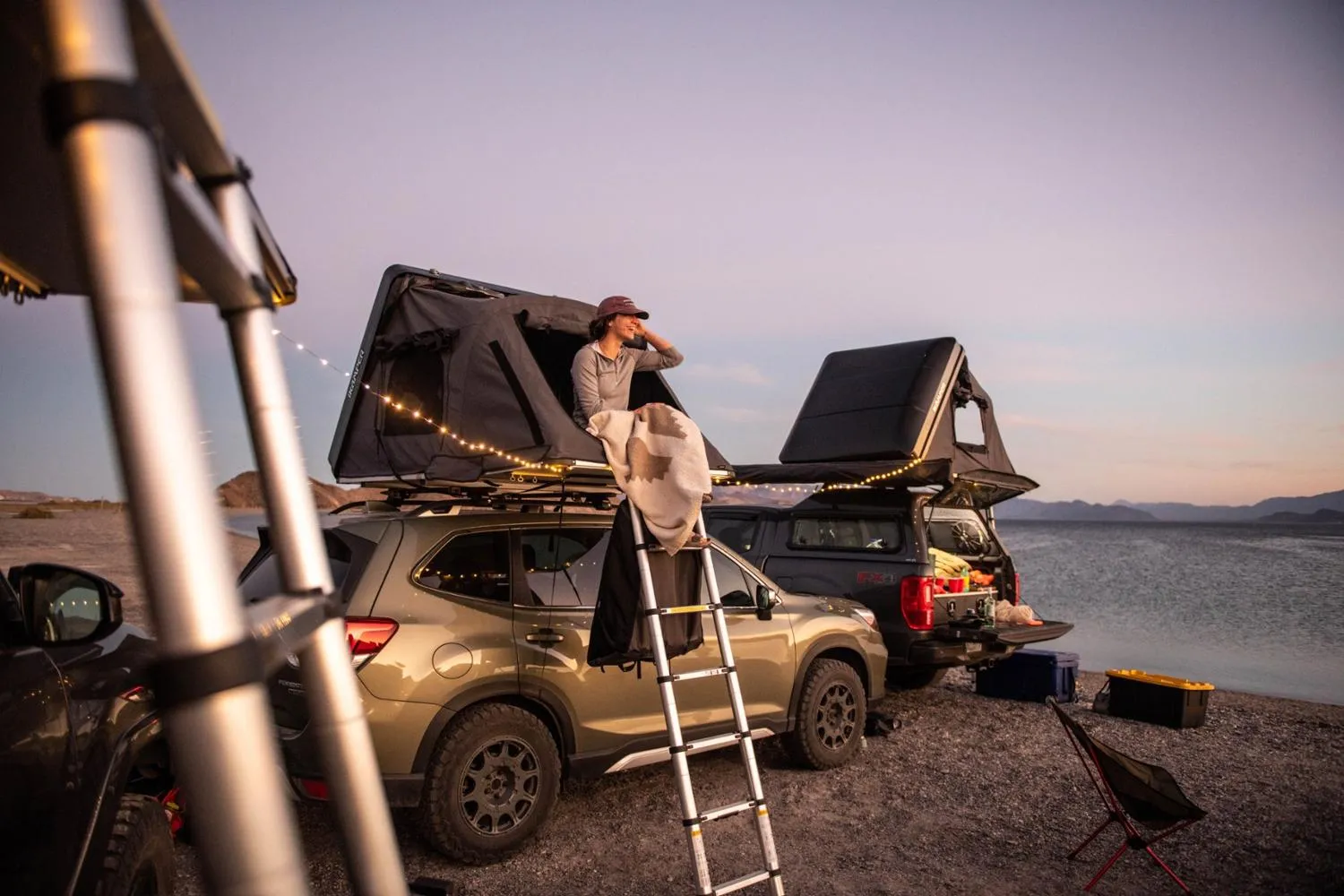 Новые запирающиеся защелки делают эту жесткую верхнюю палатку безопасной, не ограничивая доступ к кемпингу.