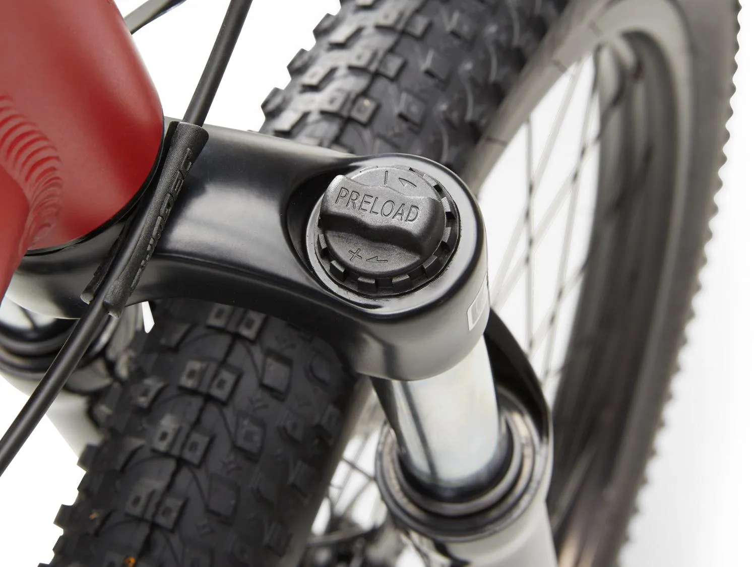 Легкая алюминиевая рама 6061 имеет подвеску с 80 мм хода, чтобы смягчать удары для улучшенного контроля