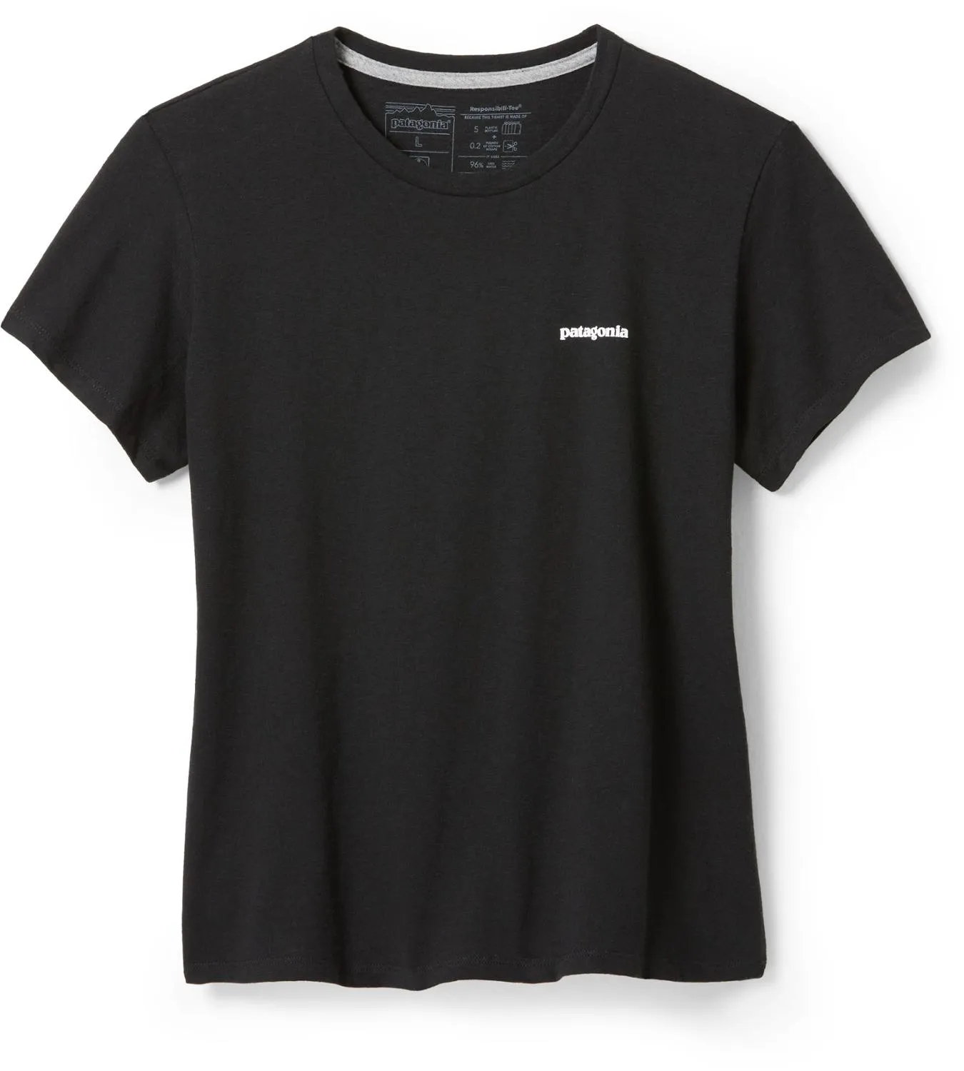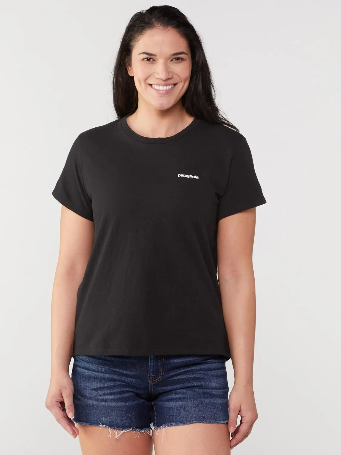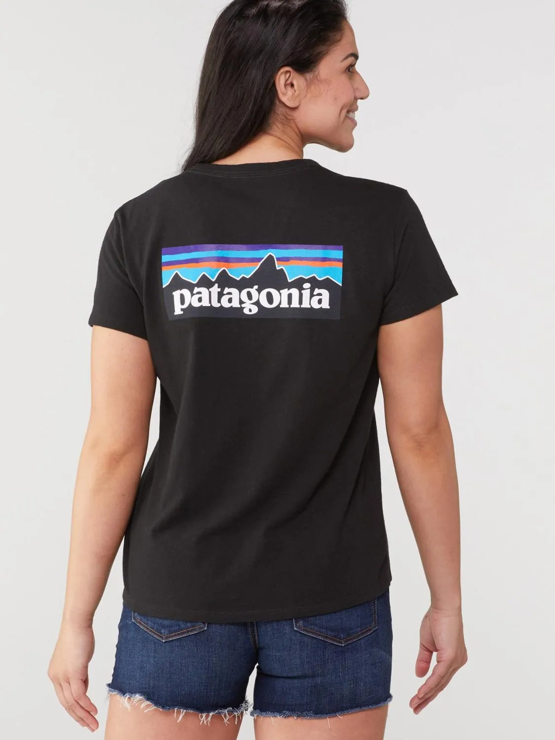 Вечная классика, футболка Patagonia P-6 Logo Responsibili-Tee для женщин изготовлена из обрезков ткани и переработанных бутылок, чтобы снизить зависимость от первичных сырьевых материалов.