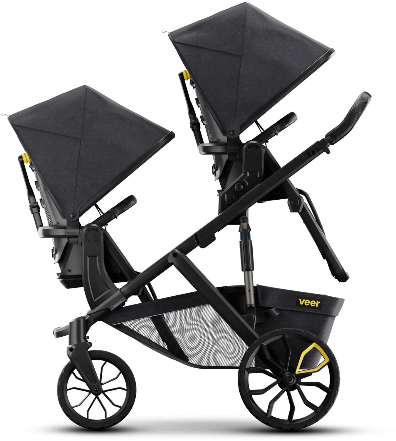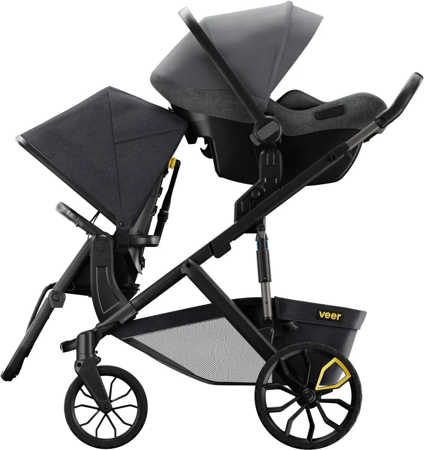Берите с собой своих маленьких, не упуская ни одной возможности. Шасси коляски Veer Switchback & Roll дает вам 4 колеса для маневренности, амортизации и комфортных поездок по различным типам местности.