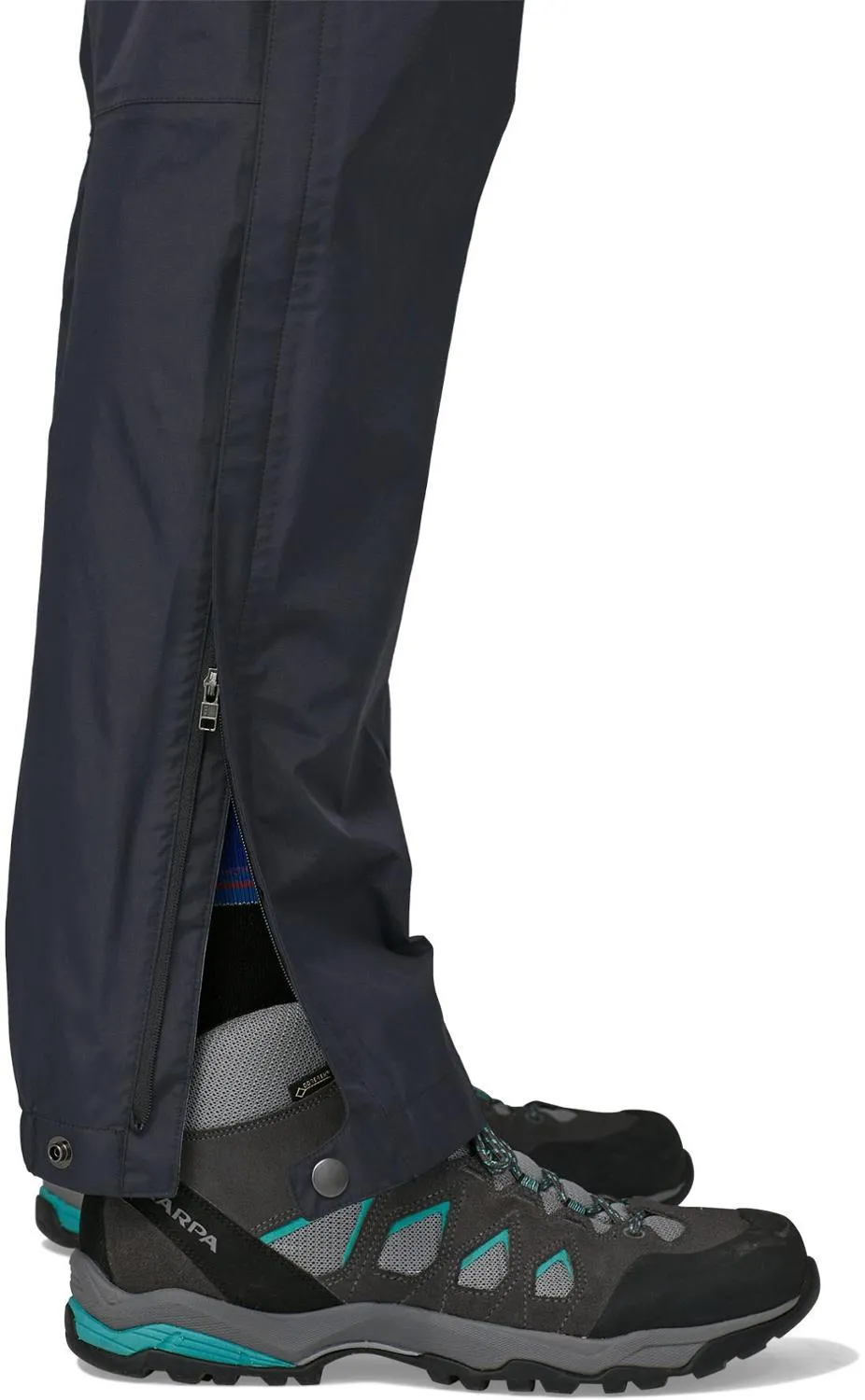 Накладные, двухсторонние боковые молнии тянутся от манжет до бедер, чтобы легко надеть на сапоги и также служат вентиляцией; частично эластичные манжеты регулируются с помощью застежки на кнопке