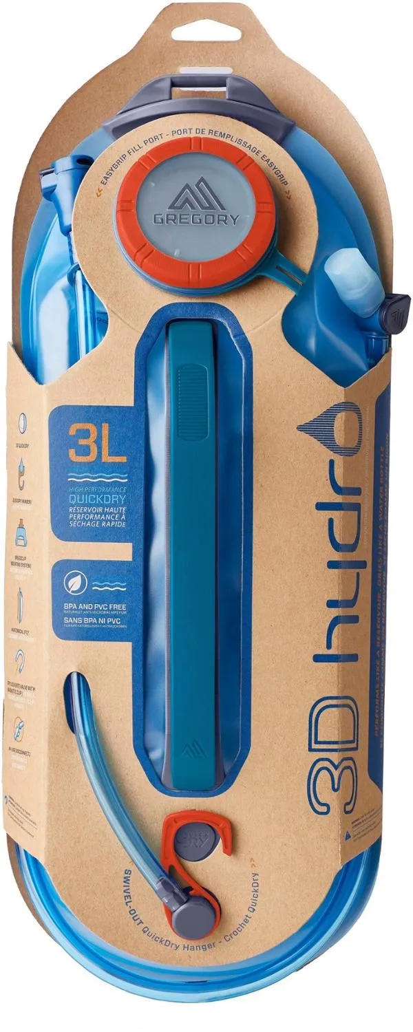 Разработанный для удобного питья на тропе, гидратационный резервуар Gregory 3D Hydro на 3 литра быстро сохнет, легко крепится к совместимым рюкзакам и обеспечивает комфорт благодаря анатомической форме.