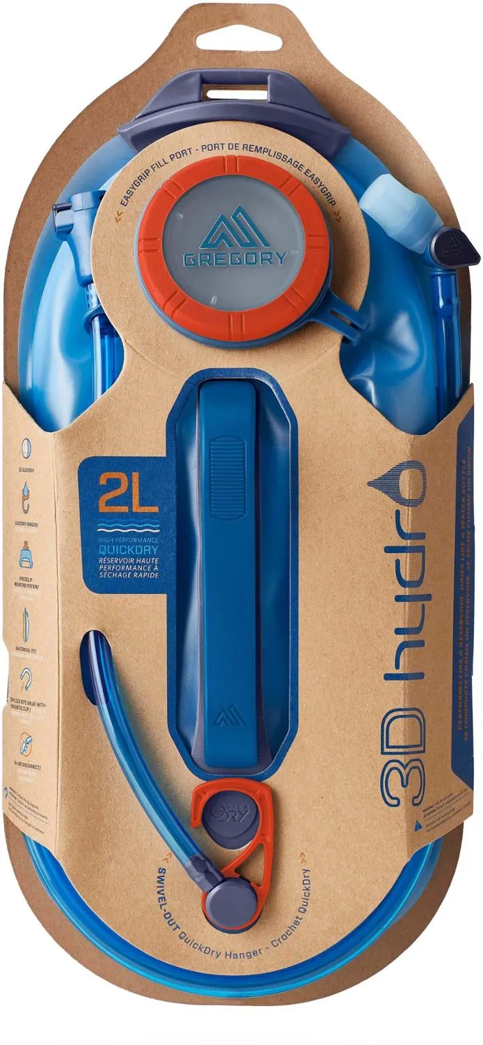 Разработанный для удобного питья на тропе, гидратационный резервуар Gregory 3D Hydro на 2 литра быстро сохнет, легко крепится к совместимым рюкзакам и обеспечивает комфорт благодаря анатомической форме.