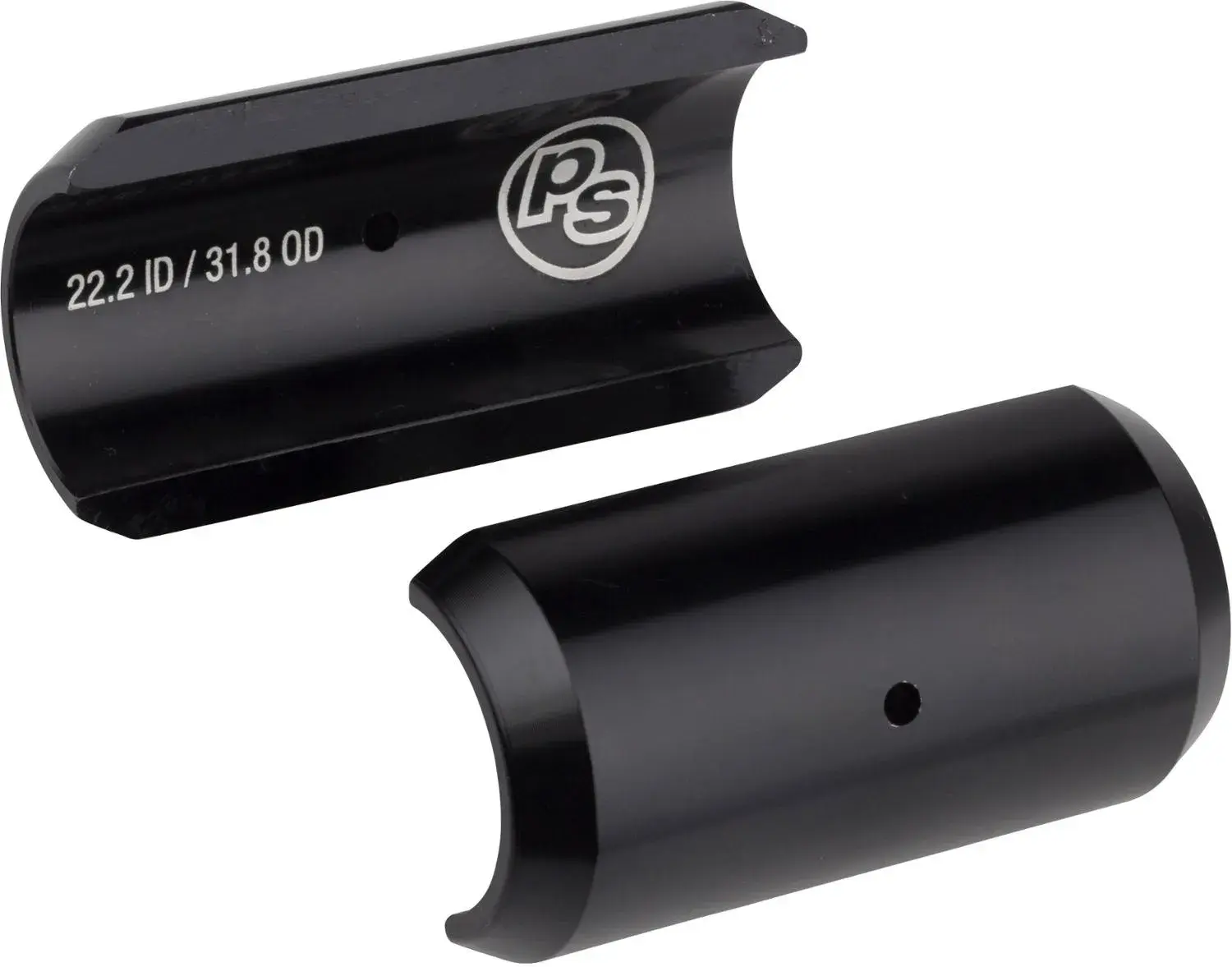 Имеет диаметр зажима 22,2 мм, но включает проставки для зажима 31,8 мм