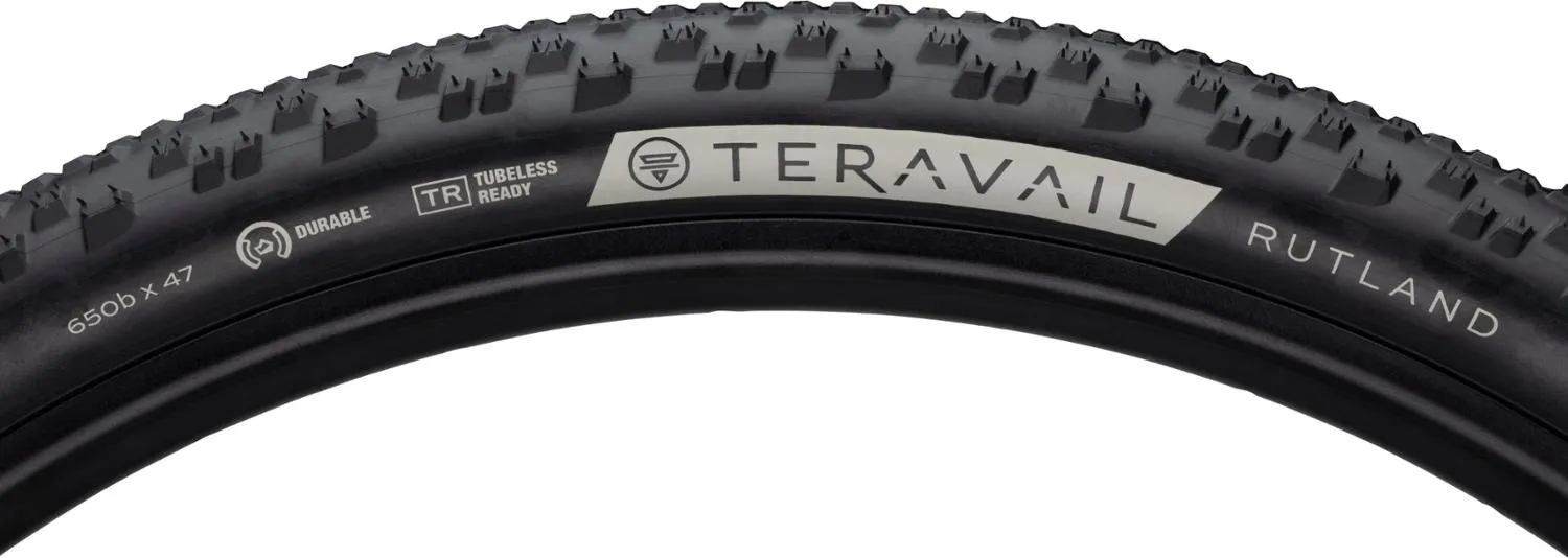 Созданная с учетом неизведанного, шина 650b Teravail Rutland Durable является простым выбором для эпических поездок. Она сцепляется с рыхлым грунтом и использует наклонные центральные выступы для уменьшения сопротивления качению.