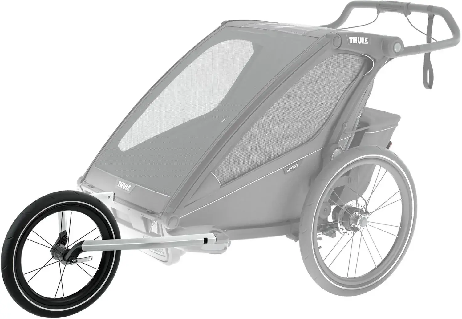 Преобразуйте ваш двойной прицеп Thule Chariot (в комплект не входит) в высокопроизводительную беговую коляску с помощью комплекта для бегов Thule Chariot Jogging Kit 2.