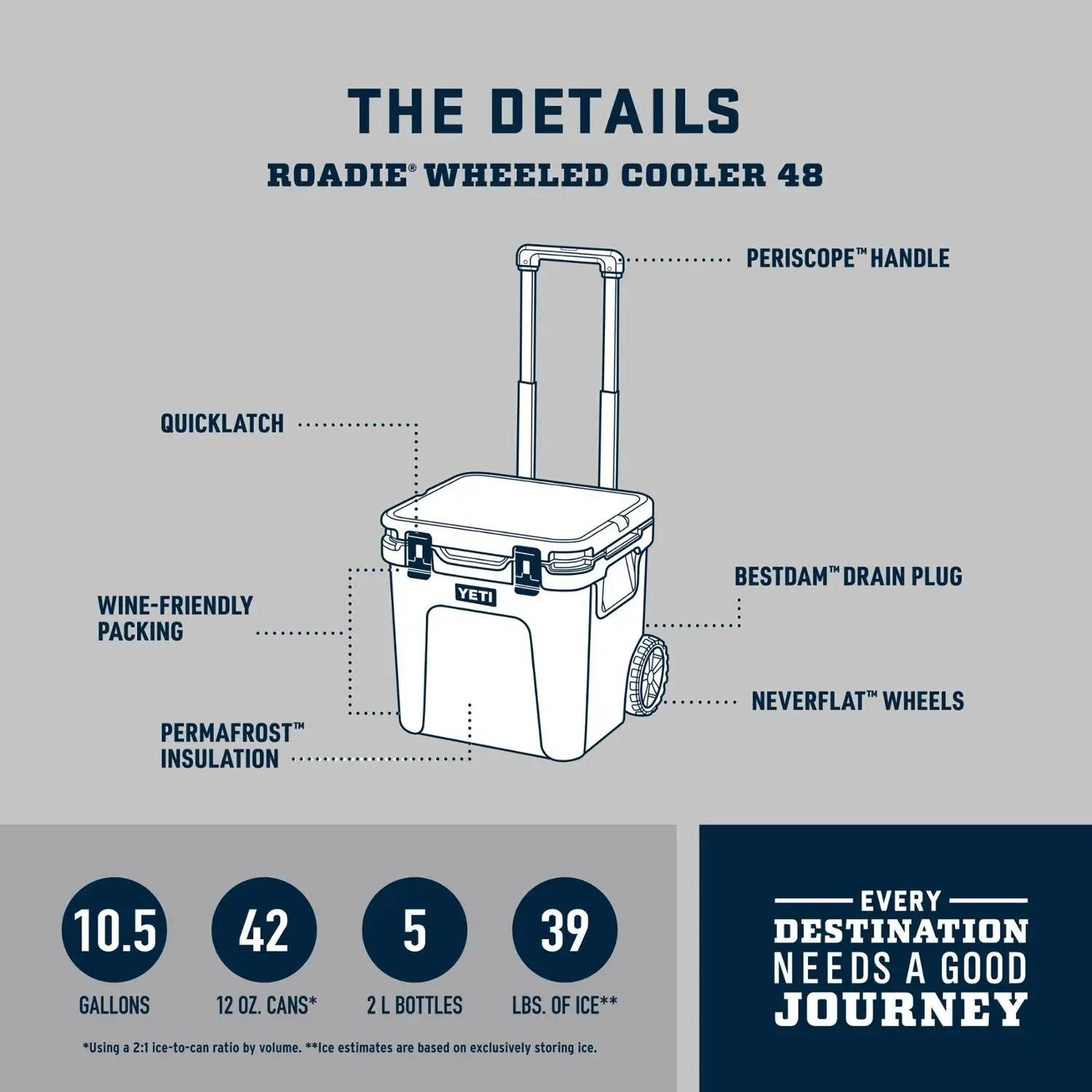 Портативный и готовый отправиться туда, где вы хотите отдохнуть, охладитель YETI Roadie 48 на колесах легко передвигается среди толп, на пляжах и по сложным маршрутам.