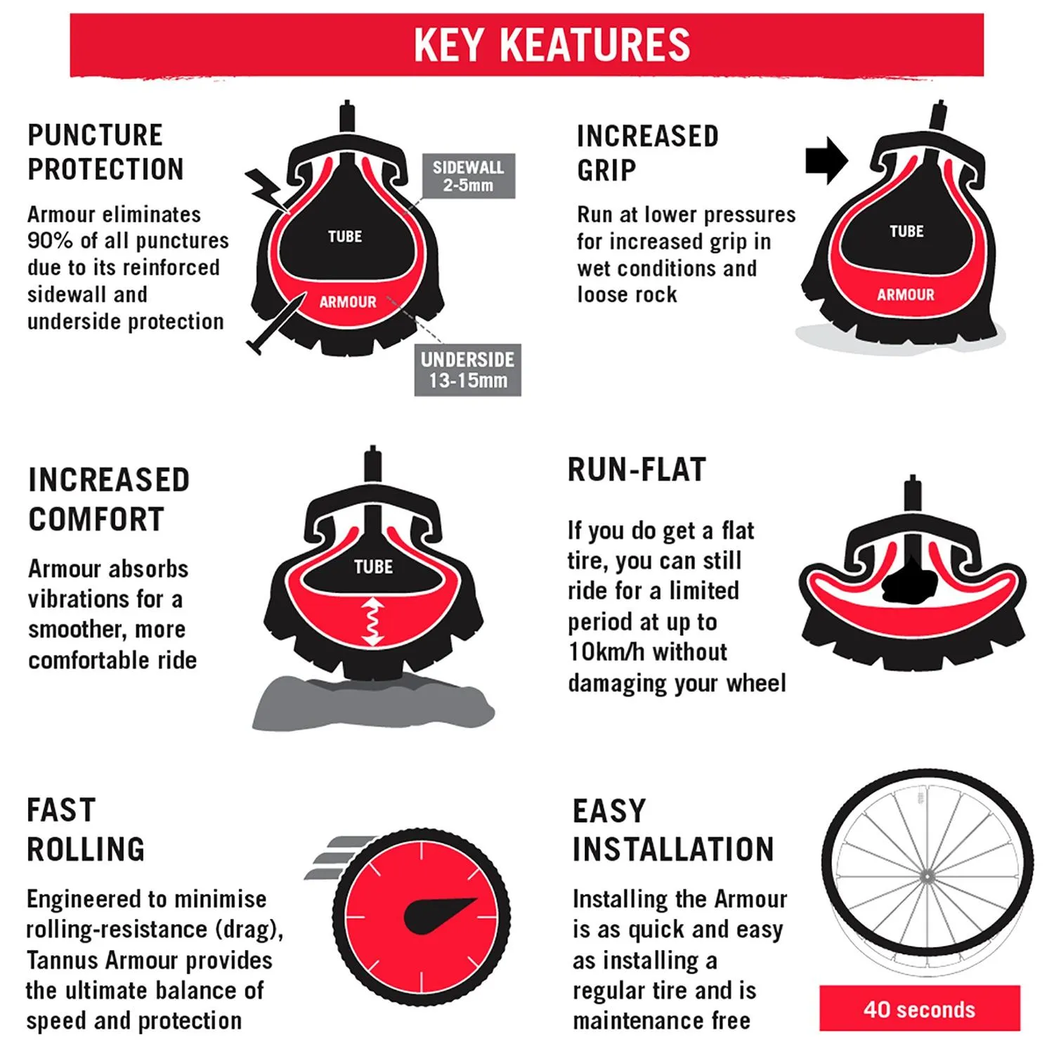 Вставка для шины Armour 27,5 дюйма Tannus, Red