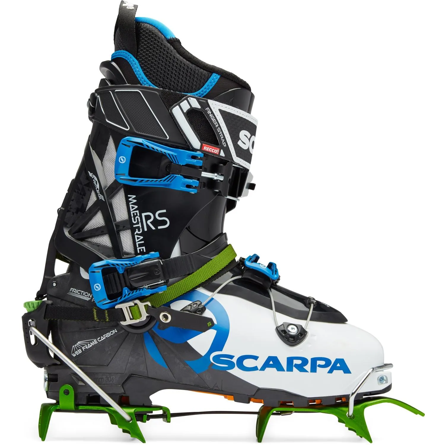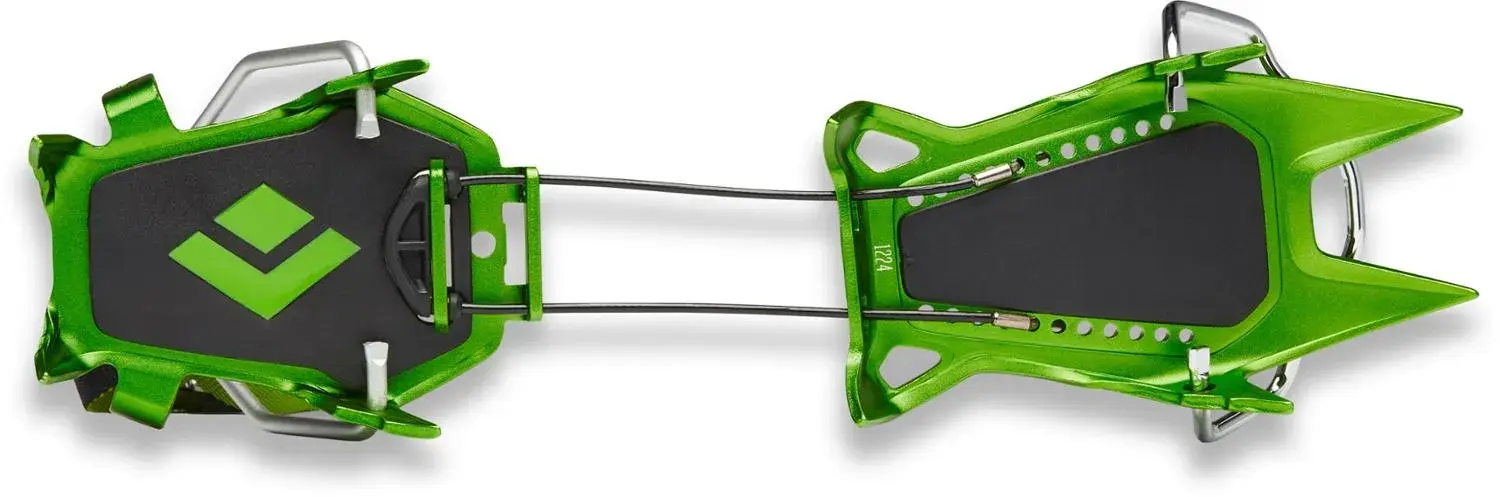 Система быстрой блокировки центрального троса экономит вес и облегчает упаковку и регулировку без использования инструментов. Версия Pro оснащена стальными проволочными креплениями спереди и алюминиевыми креплениями сзади для надежной фиксации с горными, телемарковыми и рандонне-походными ботинками.