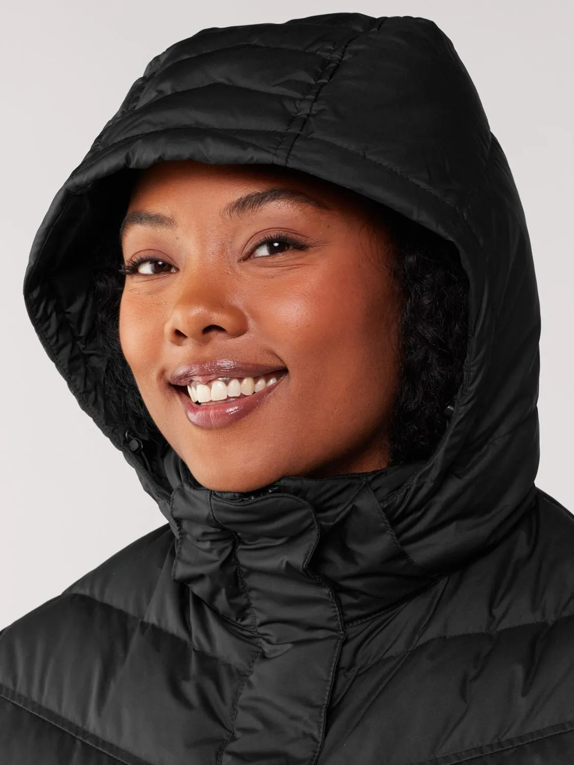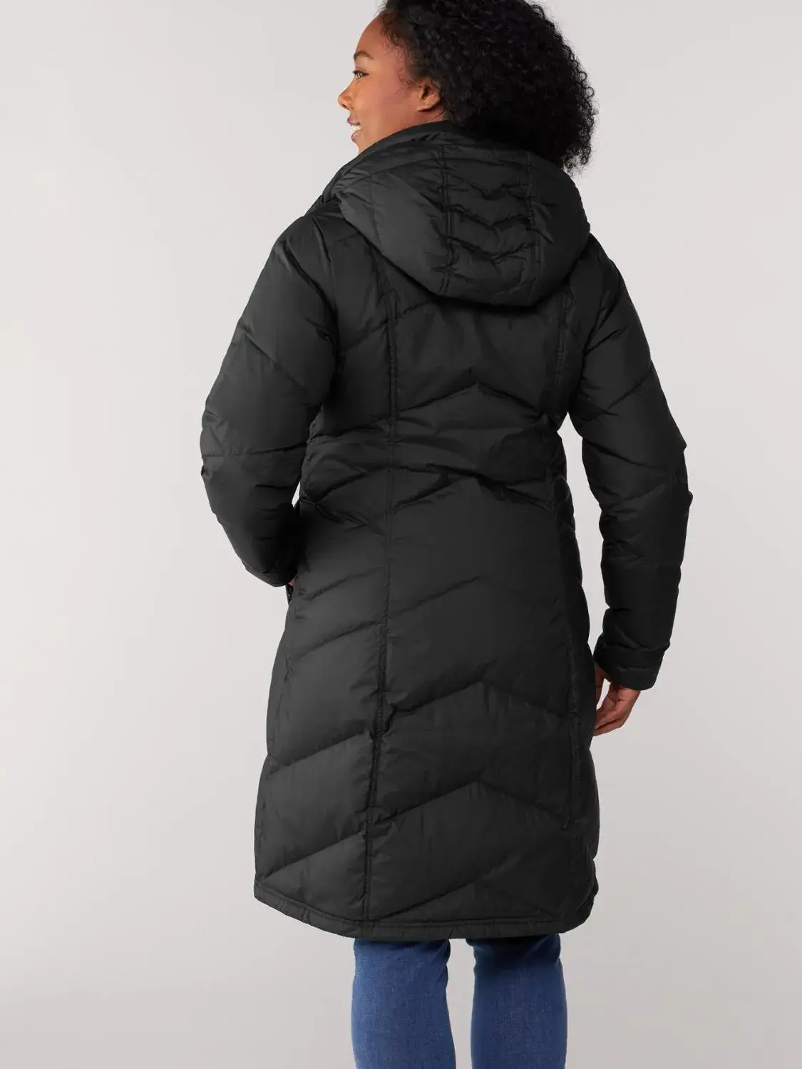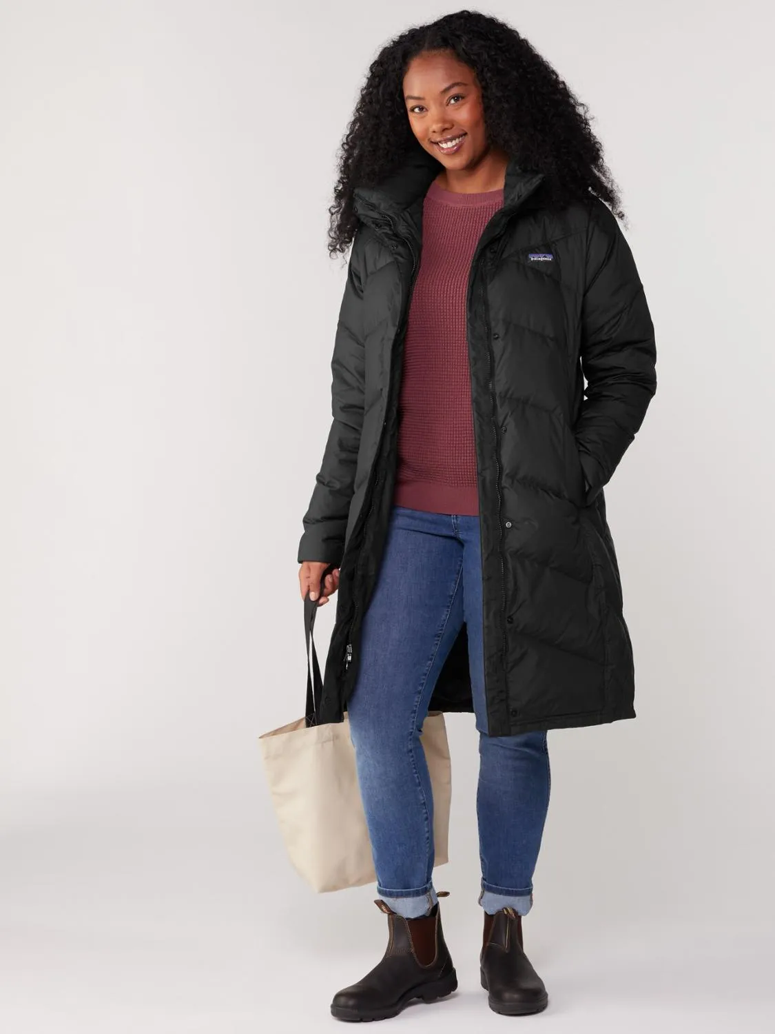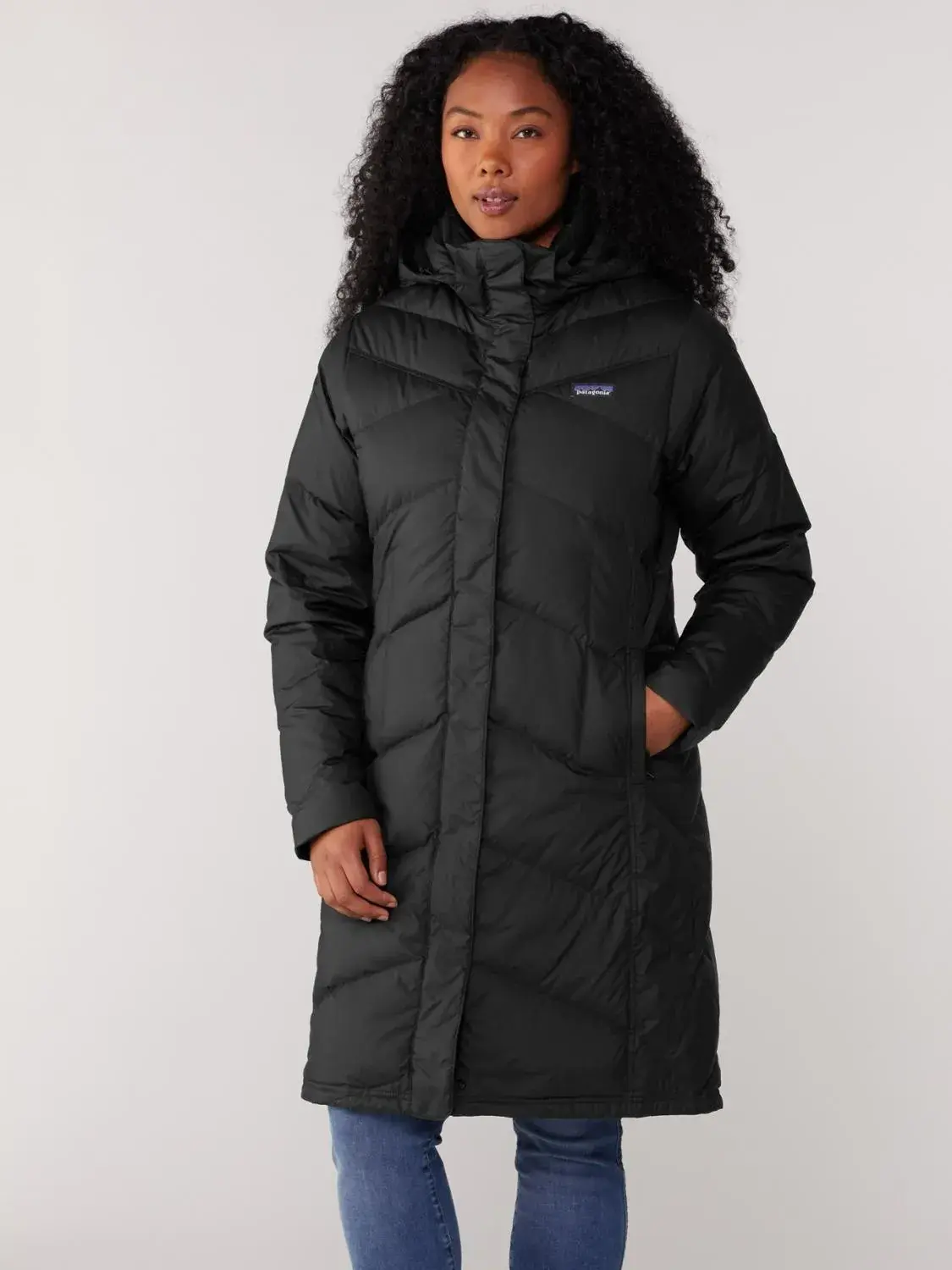 Когда приходит зимняя погода, обращайтесь к женскому пуховику Patagonia Down With It. Куртка длиной до колен сохраняет тепло и не пропускает холод, что делает ее отличной для морозных условий.