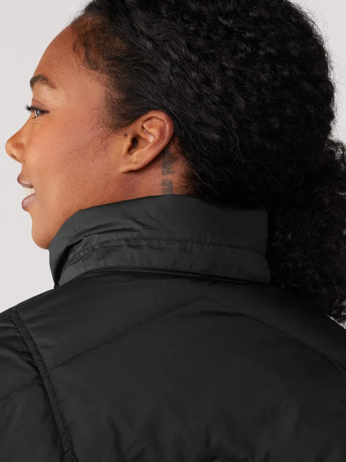 Боковые каналы в форме шеврона создают современный силуэт с принцессными швами спереди и сзади для формы и утепленного, контурного прилегания