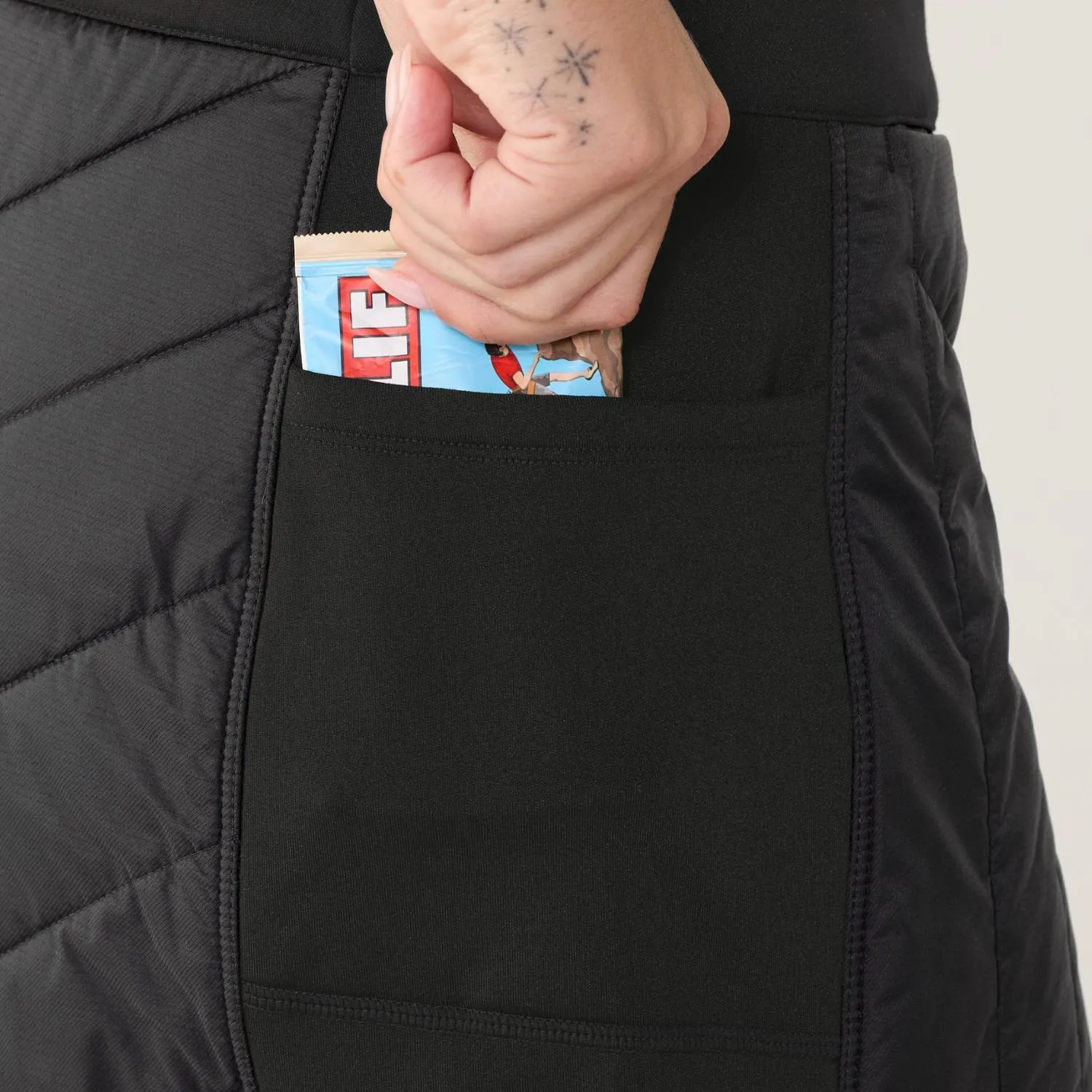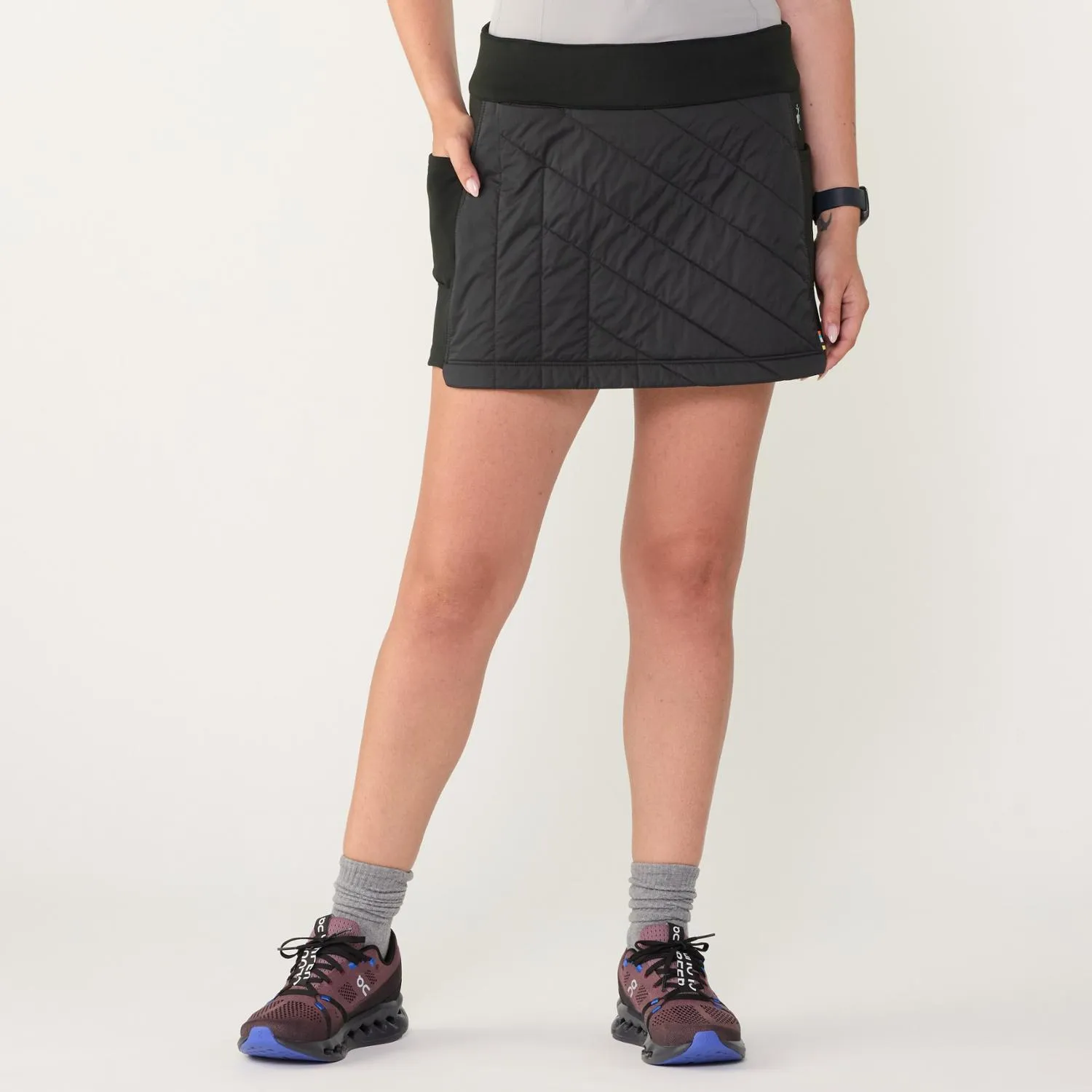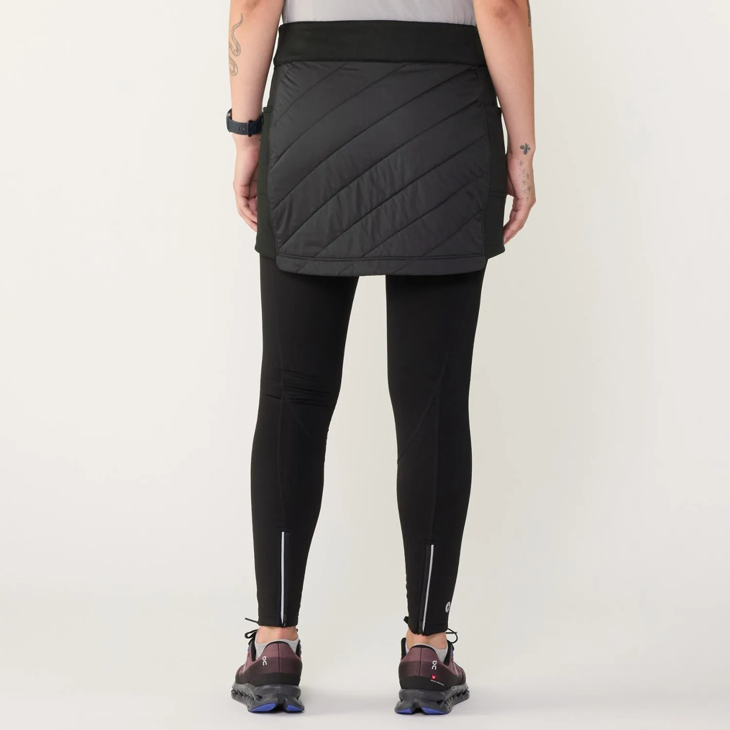 Юбка Women's Smartwool Smartloft Pull-On, изготовленная из ветроустойчивого переработанного нейлона и утеплителя из мериносовой шерсти для повышения комфорта и управления потом, обеспечивает легкое, упаковываемое тепло.