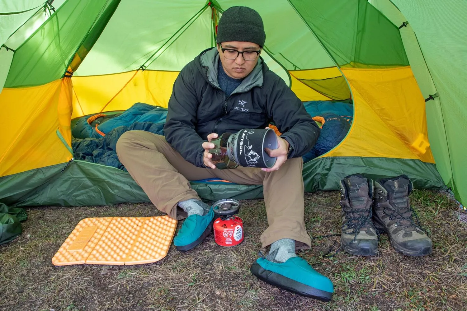 Побалуйте свои уставшие ноги в походных тапочках Exped. Легкий утеплитель и надежная посадка сохраняют тепло, в то время как противоскользящие подошвы позволяют вам свободно передвигаться по вашему лагерю или кабинету.