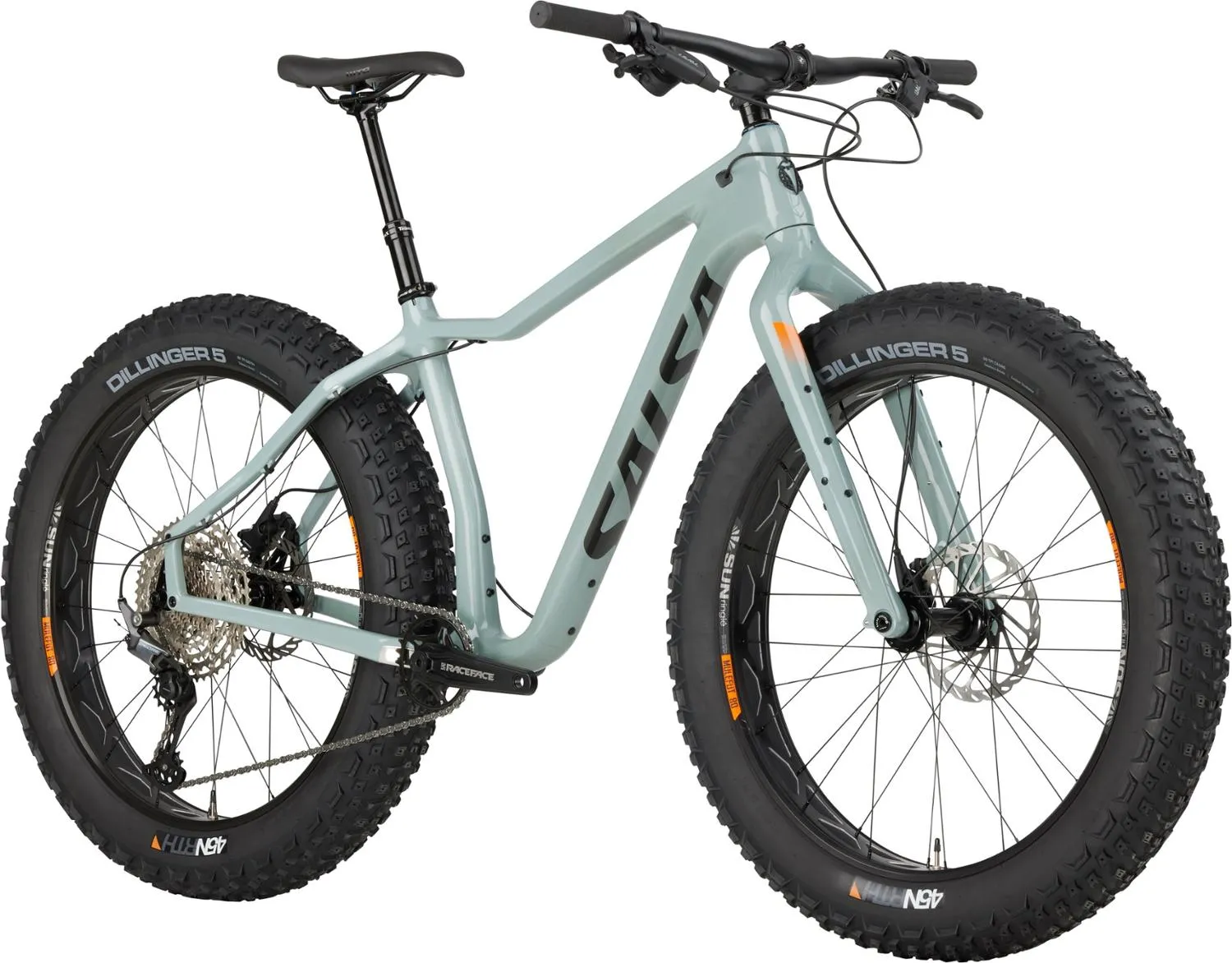 Разработанный для успешного использования в различных условиях, велосипед Salsa Heyday Carbon 1.6 Deore 12 с жирными шинами имеет низкий и смещенный назад центр тяжести, что увеличивает стабильность при движении по сложному рельефу.