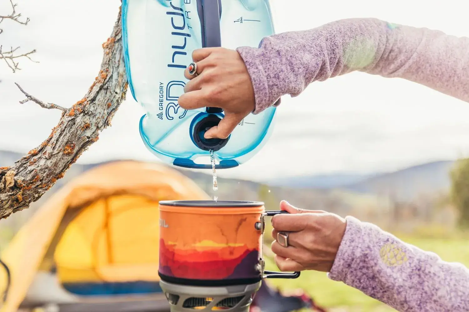 Разработанный для употребления во время походов и использования на базе, гидратационный резервуар Gregory 3D Hydro Trek вместимостью 3 литра оснащён краником с кнопкой для удобства наполнения бутылок и мытья рук в лагере.