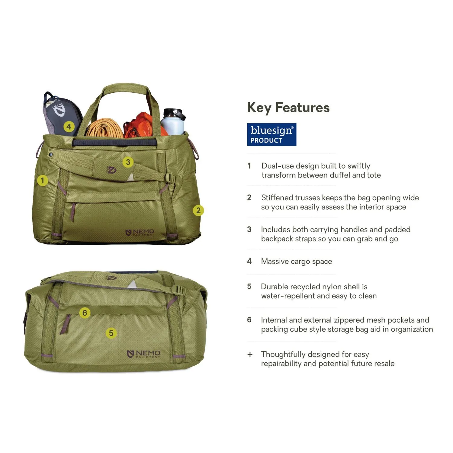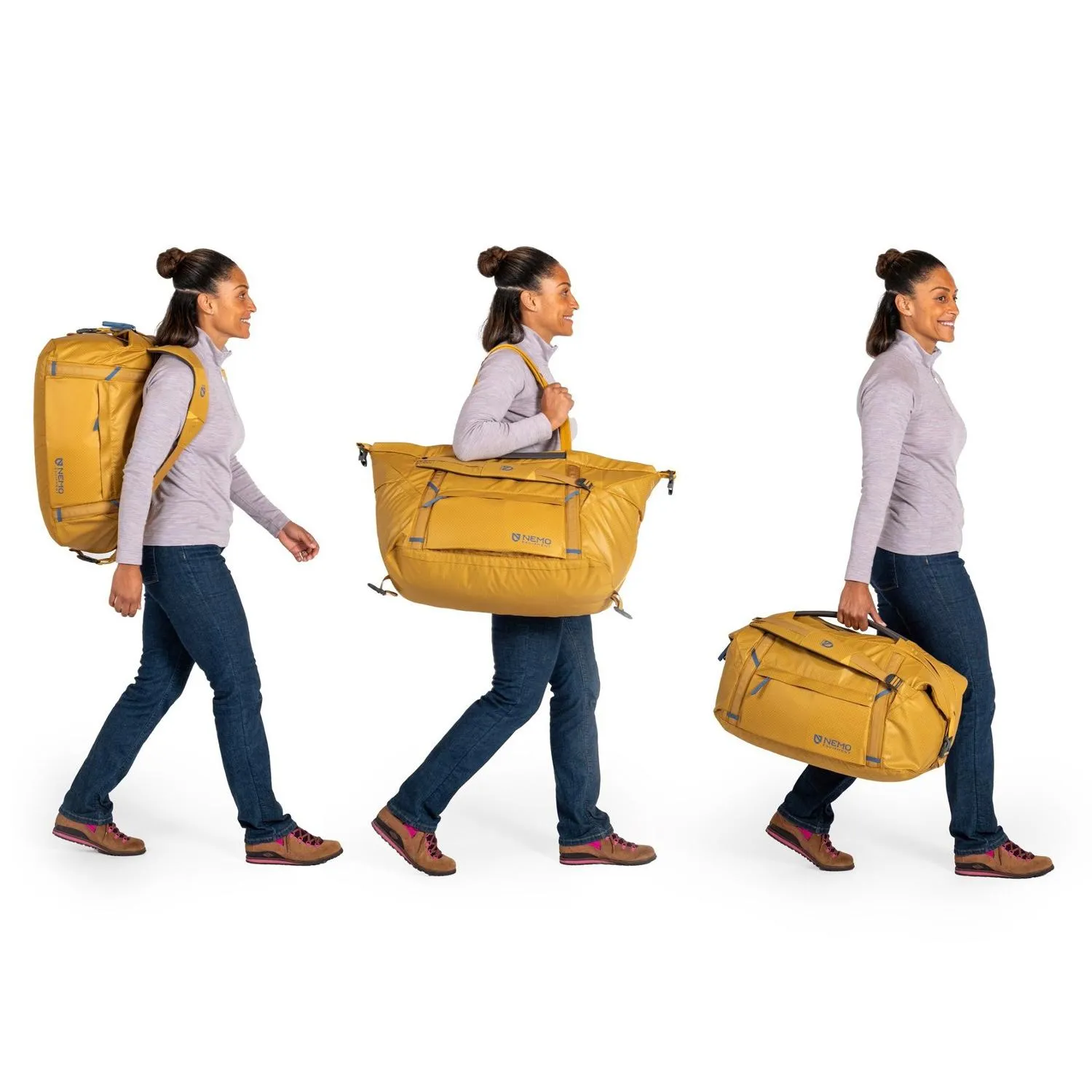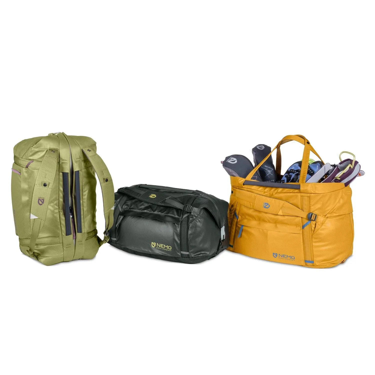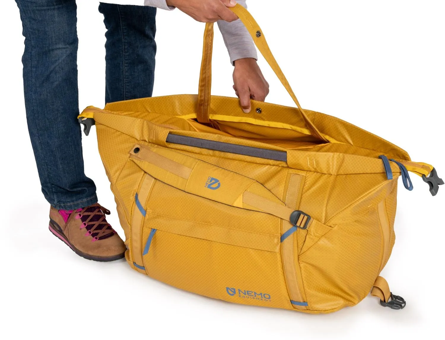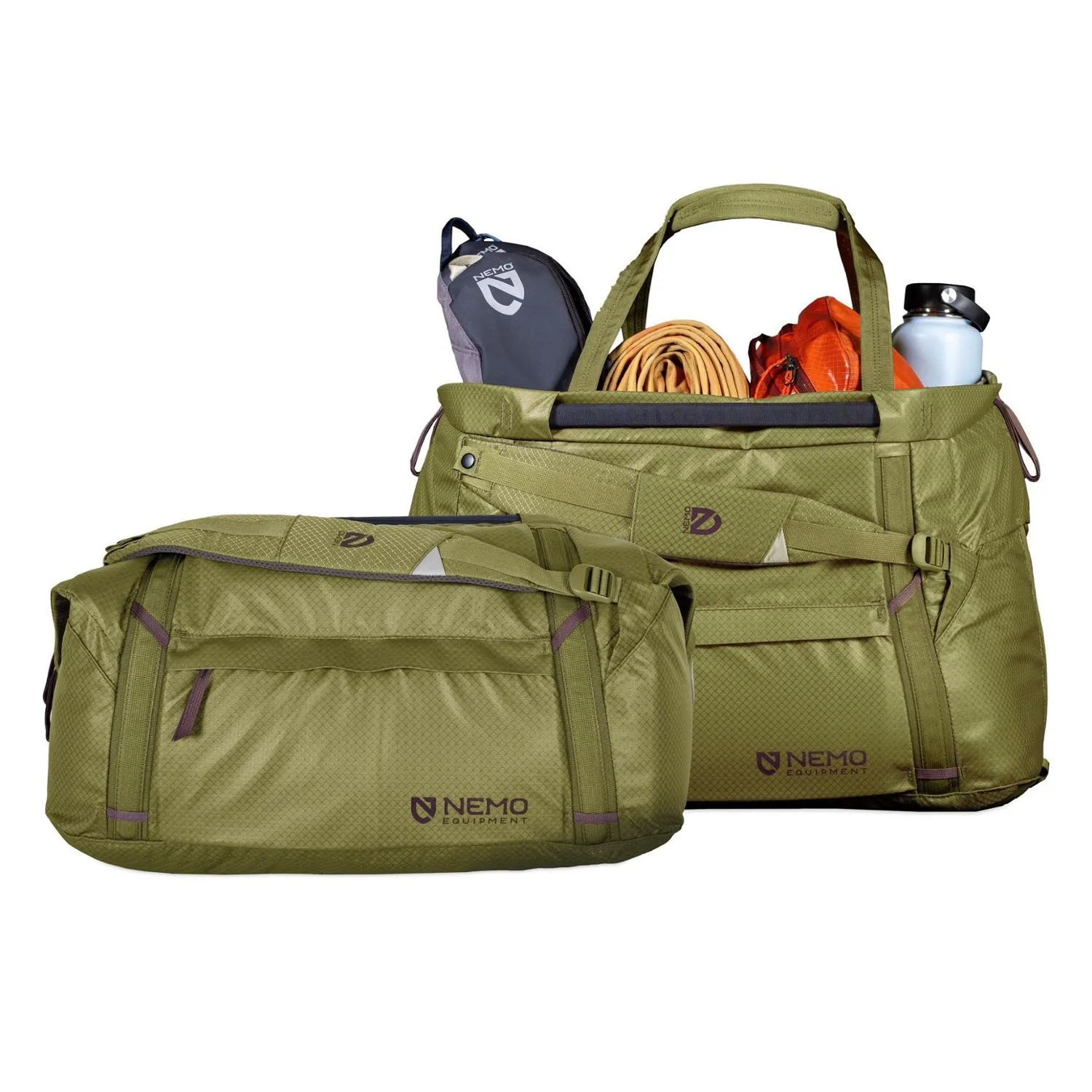Будь то сборы для большой экскурсии, транспортировка снаряжения от машины к лагерю или подготовка к дню на пляже, водоотталкивающая сумка NEMO Double Haul объемом 55 литров может использоваться как дюфель, так и рюкзак.