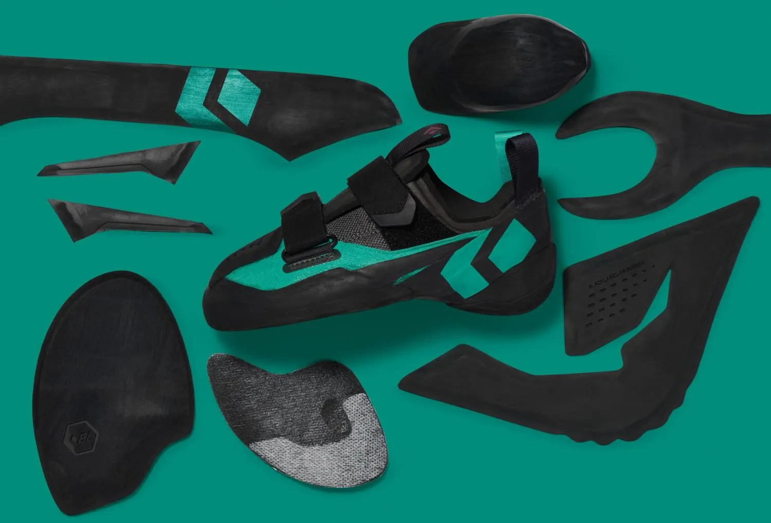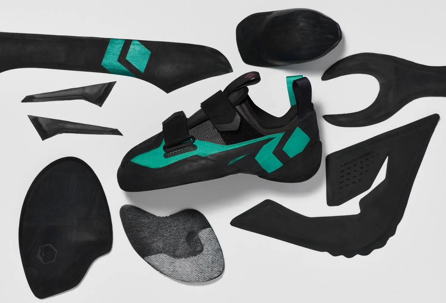 Формованный липкий каучук не вырезан из одного листа, что позволяет Black Diamond оптимизировать формы для минимальных отходов, низкого веса, последовательности и комфорта.