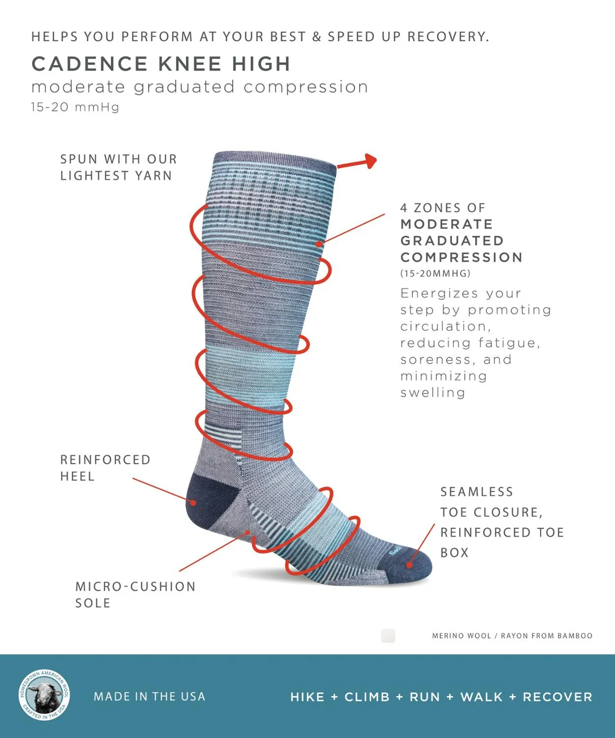 С женскими компрессионными носками Sockwell Cadence с умеренным градуированным сжатием и минимальной подушечкой комфорт повышается во время длительного сидения, стояния, полета или физических упражнений без дополнительного объема.