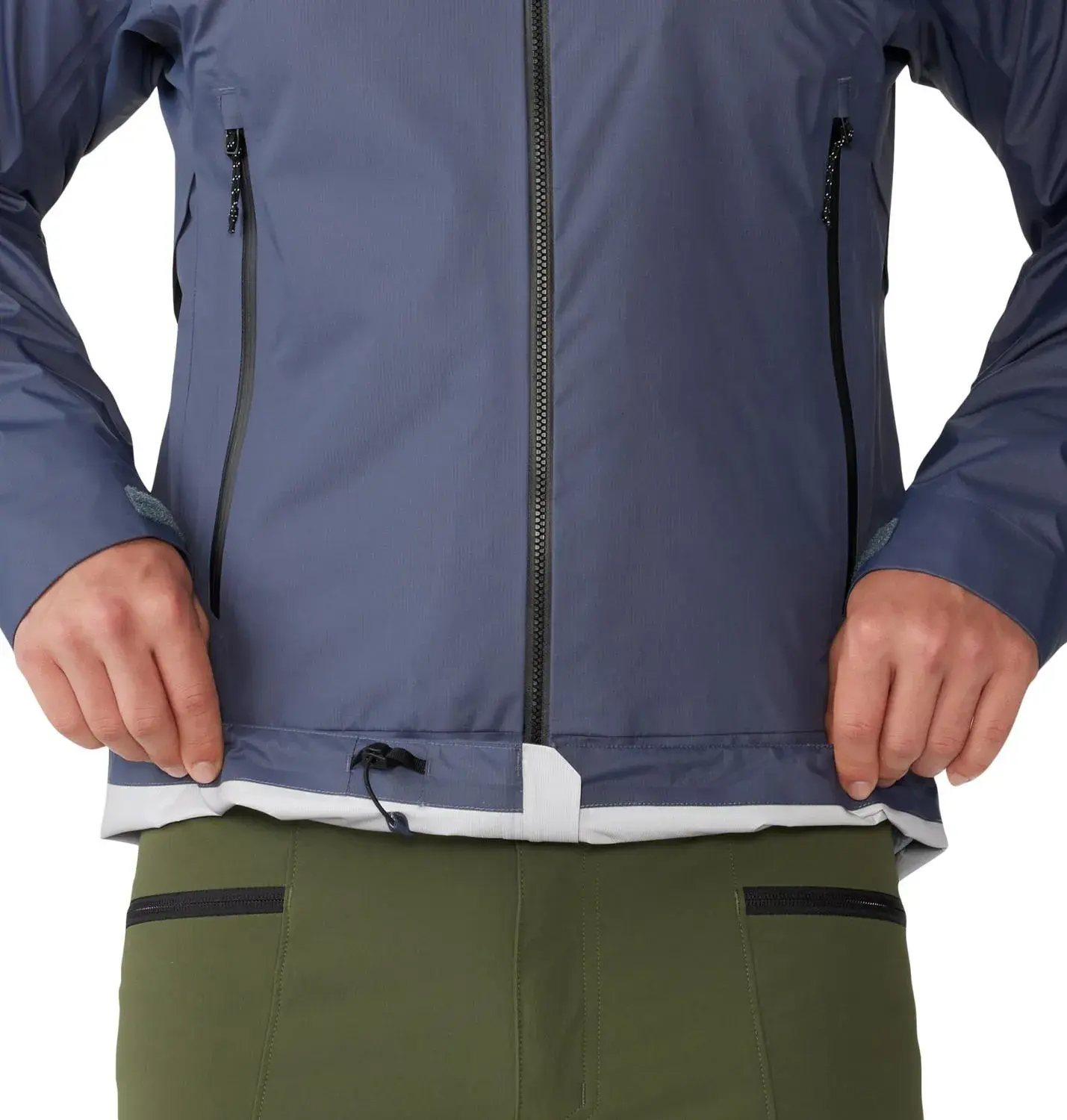 Водостойкая двухсторонняя центральная молния; ламинированная защитная планка от заедания с защитой подбородка.