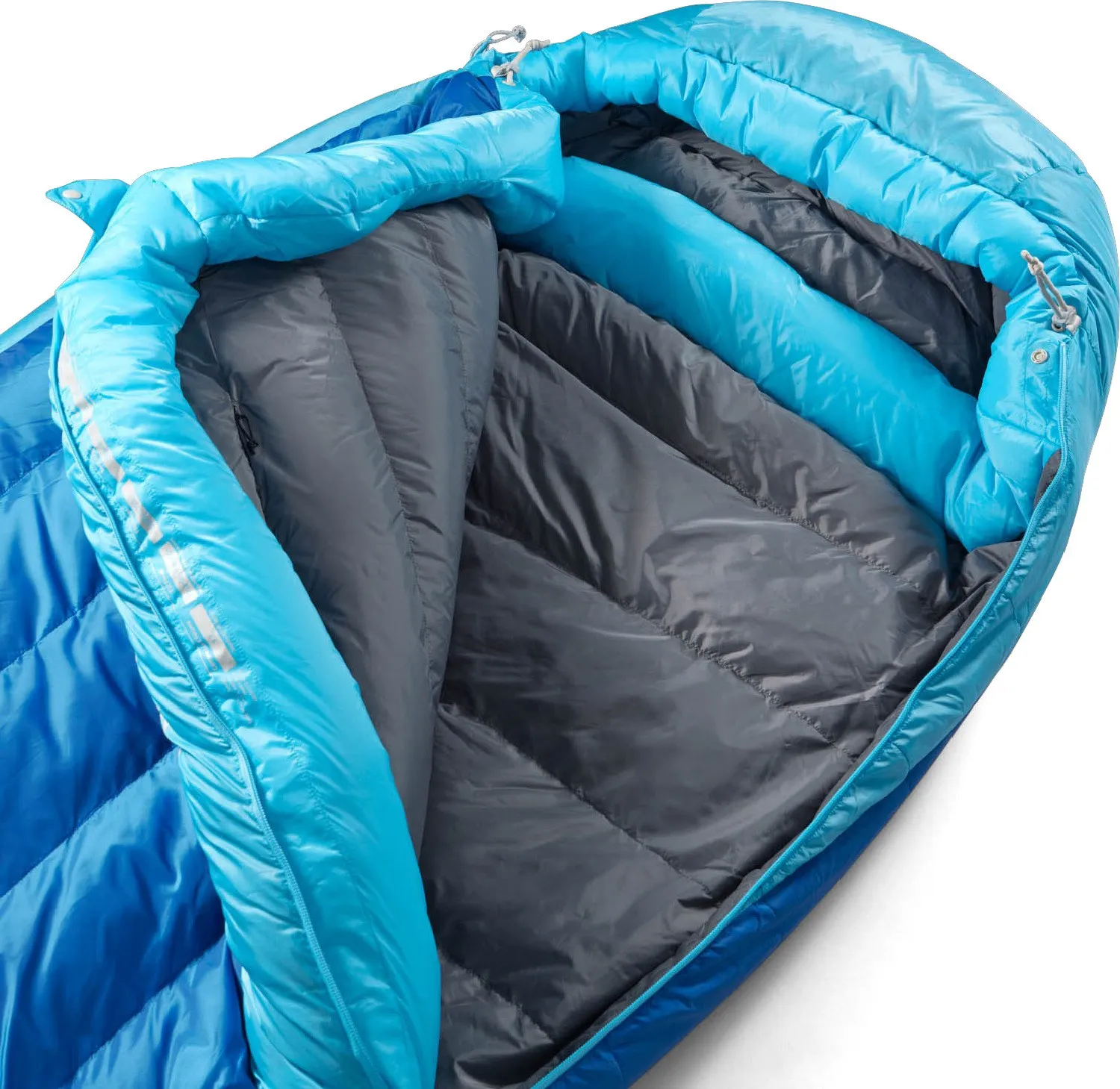 Система застежки Free-Flow Zip позволяет открывать спальный мешок последовательно для вентиляции до того момента, когда он раскрыт как одеяло