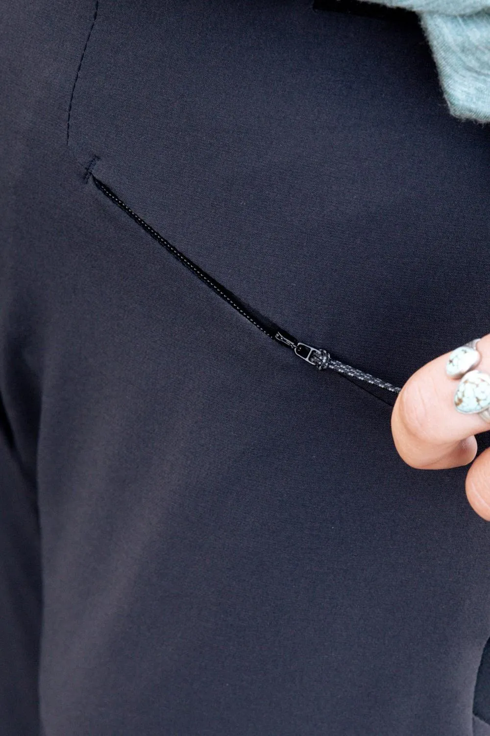 2 передних кармана, совместимых с альпинистским седланием, с молниями