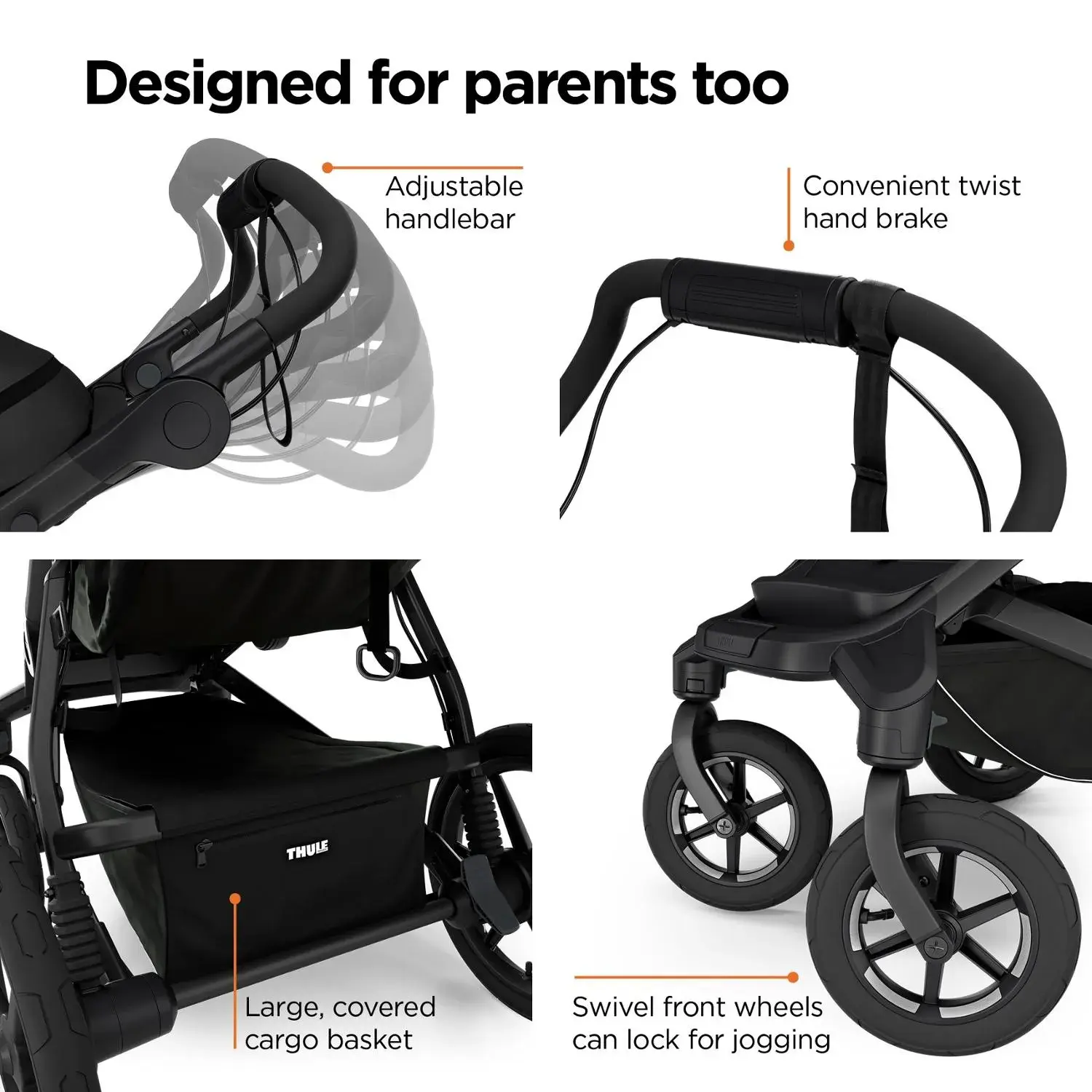 Городская универсальная коляска Thule Urban Glide 4-Wheel, идеально подходящая для новорожденных и малышей, сочетает в себе комфорт, функциональность и вместительное хранилище для повседневного использования.