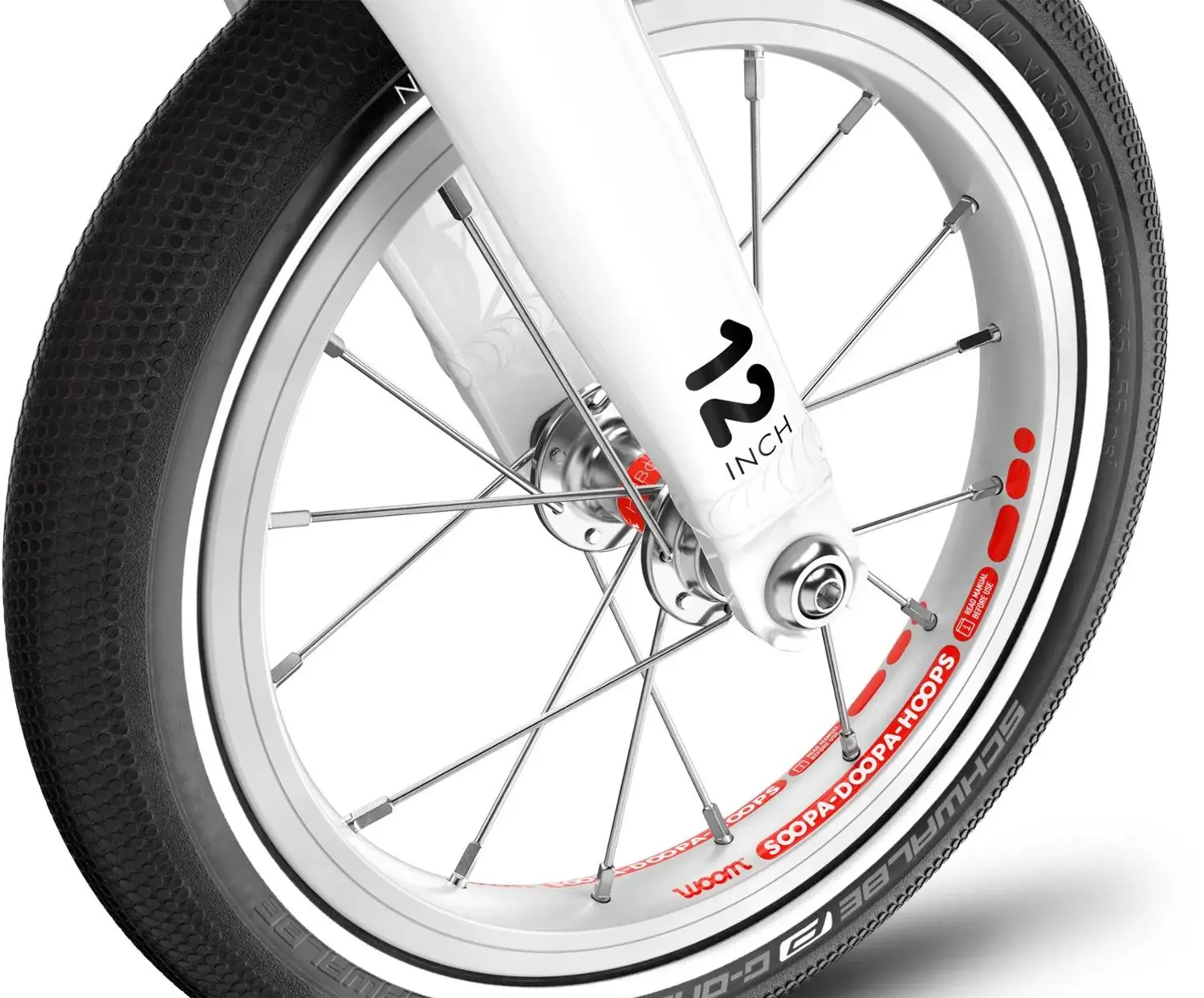 Колёса woom SOOPA DOOPA HOOPS 12 дюймов специально спроектированы с детской геометрией и имеют гладкие, бесконтактные ступицы и двойные обода для легкого управления