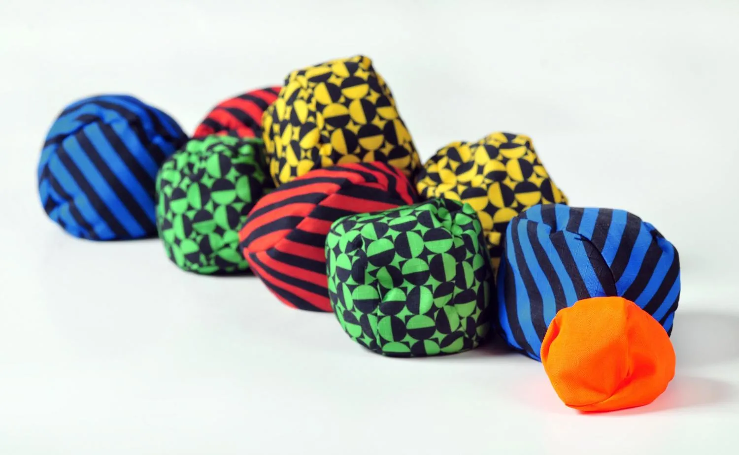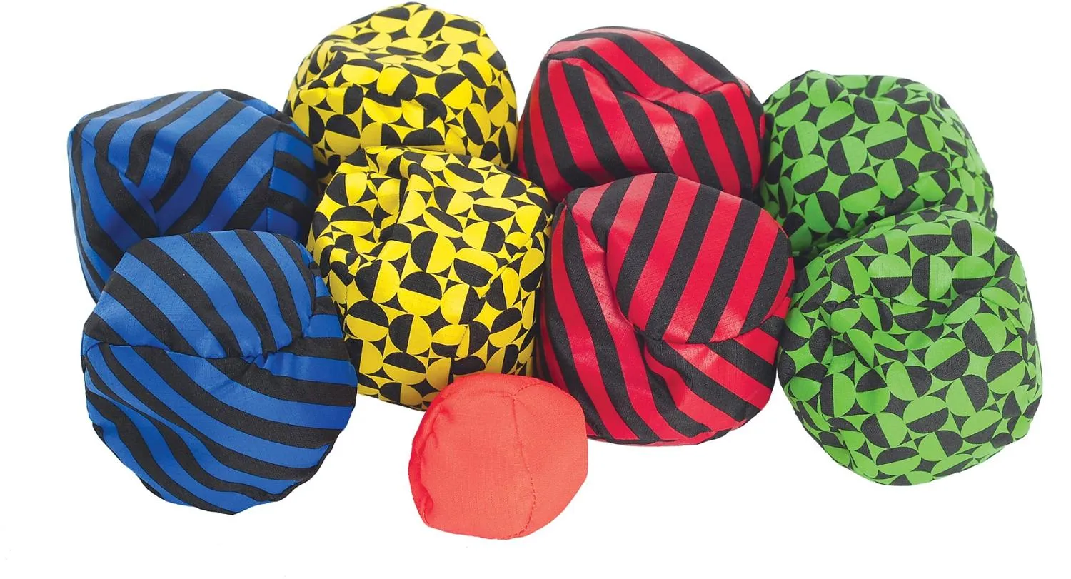 Включает 8 мягких боци球ов, 1 цельный мяч "Джек", инструкции и мешок из нейлона/сетчатого материала с завязками