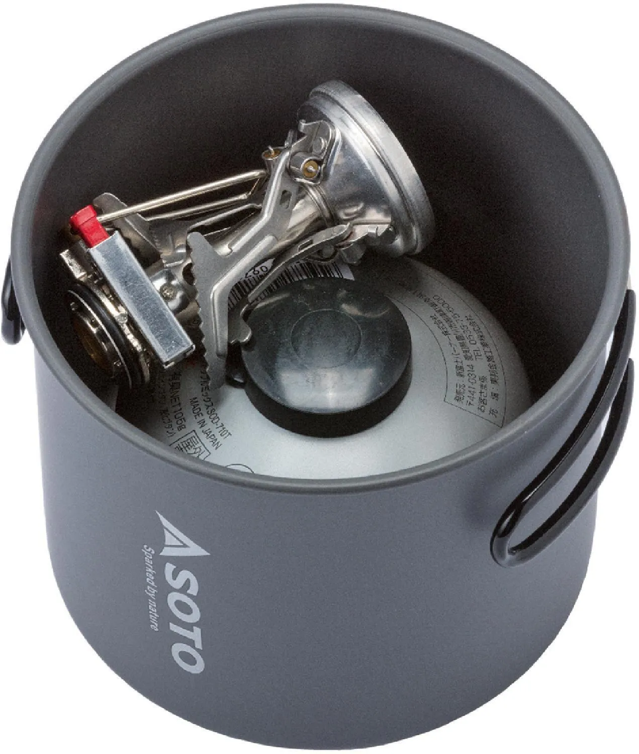 Созданный для минималистского туриста, котелок Soto New River удерживает вашу плиту и топливо во время похода, а затем готовит одноразовые блюда, когда приходит время остановиться в лагере.