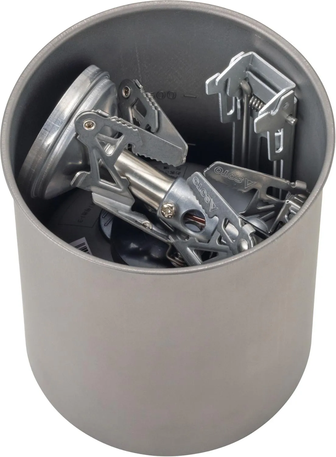 Включает в себя кастрюлю объемом 750 мл, изготовленную из высококачественного титана, и ручку-лиштер из высококачественного алюминия и нержавеющей стали. Кастрюля может вмещать баллон с газом объемом 110 г, маленькую туристическую плитку и ручку (топливо и плитка не включены). Кастрюля весит 60 г, крышка весит 15 г, а съемная ручка весит 20 г, в сумме 95 г.