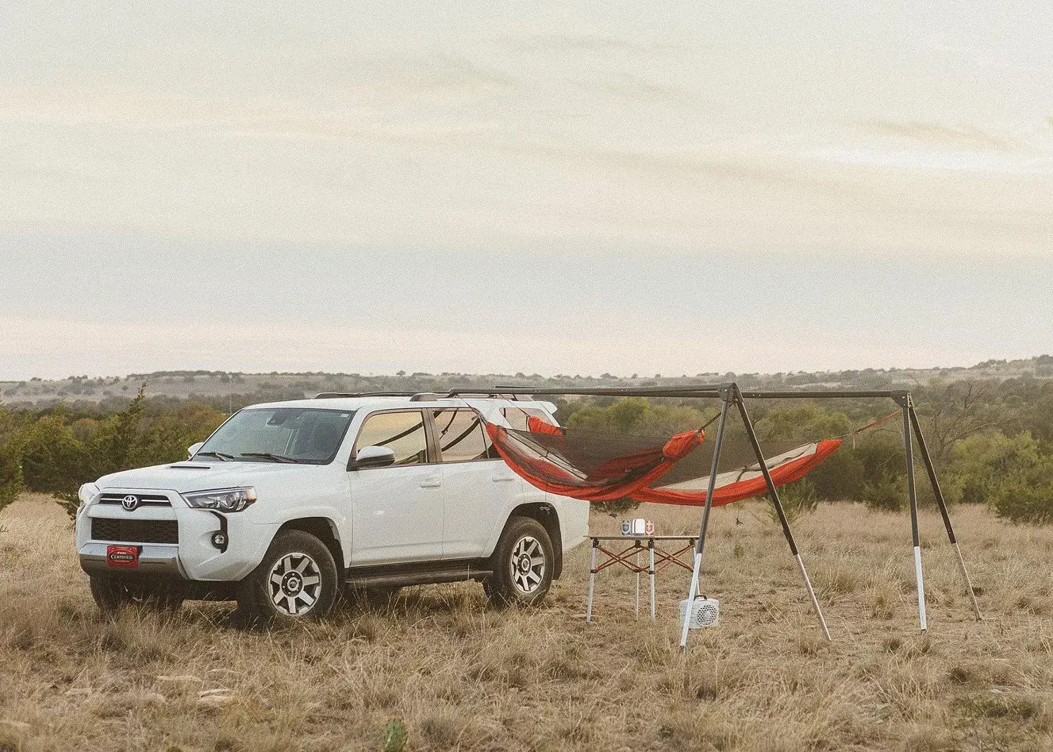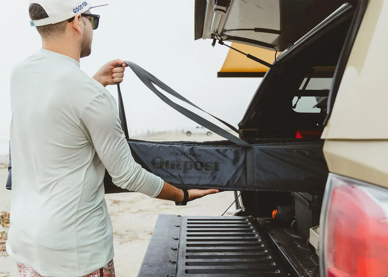 Поднимите свой походный опыт с земли в любой обстановке — без деревьев — с помощью гамачной стойки Kammok Outpost. Где бы ни бродил ваш автомобиль, вы можете насладиться комфортным сном под звездами.