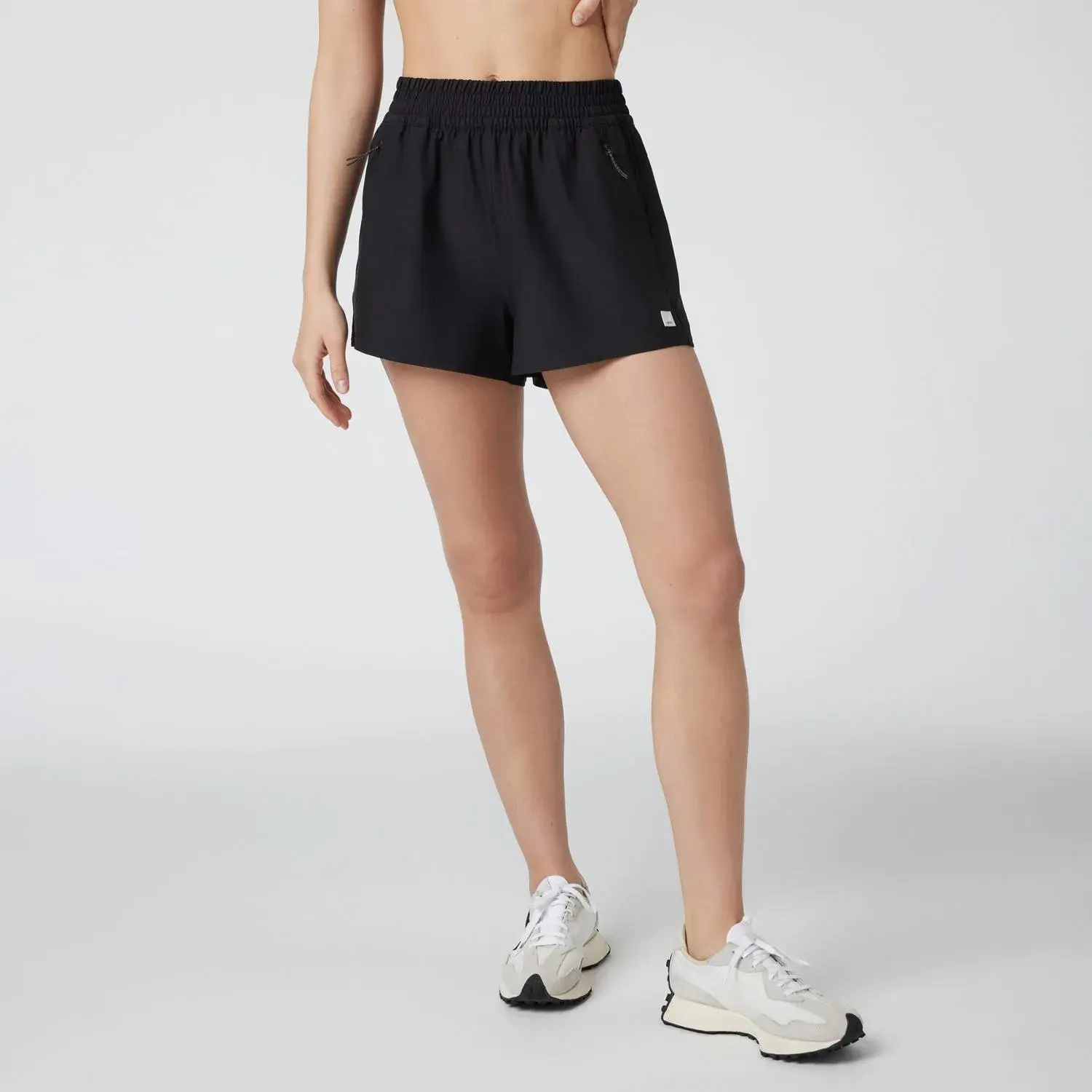 Женские шорты Vuori Dash 2.0 имеют обновленный крой с высокой посадкой и большим пространством в бедрах и ногах, а также защищенные карманы для хранения необходимых вещей и перфорированные панели для дыхания.