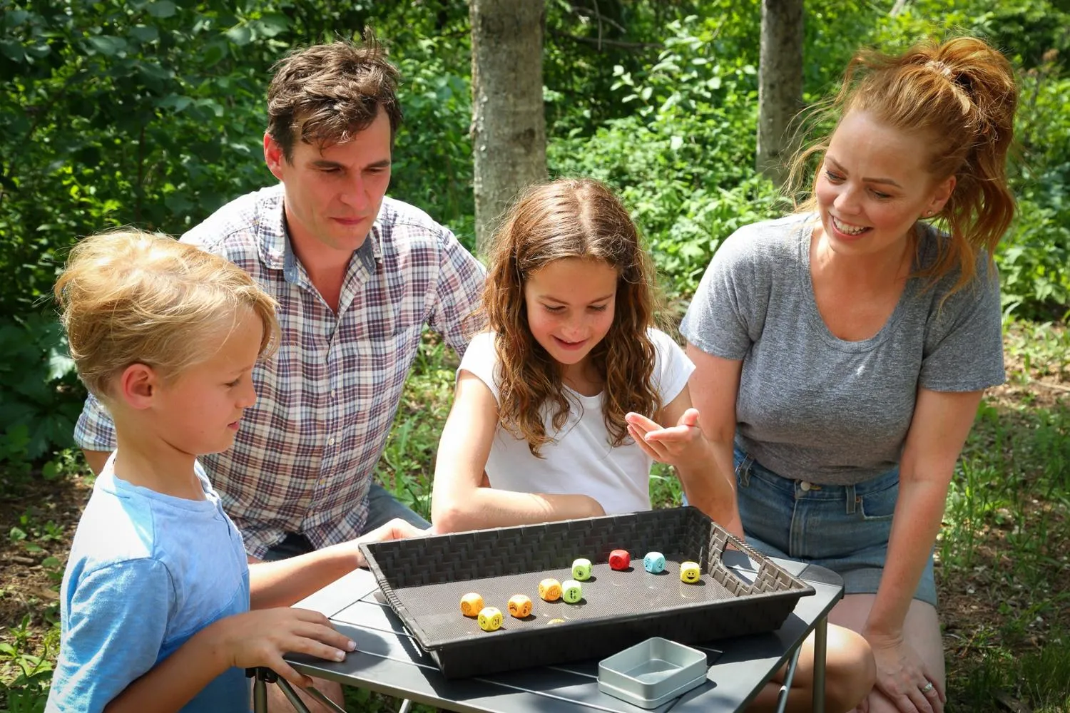 Когда рассказывание истории закончено, кости можно хранить в прилагаемой жесткой коробке