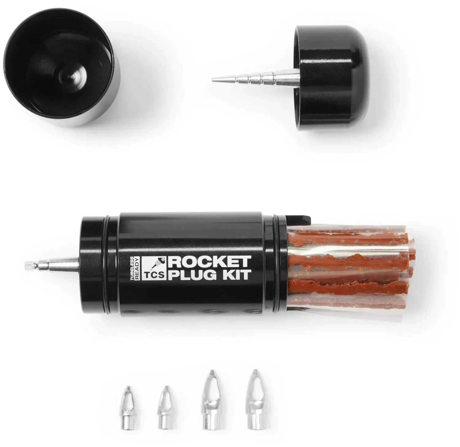 Будьте готовы к проколу на трассе с набором для ремонта шин WTB TCS Rocket Tire Plug. В него входит инструмент для установки заплатки, 4 якоря (2 больших и 2 маленьких) и пятнадцать заплаток размером 1,5 мм, чтобы вы могли быстро остановить утечку.
