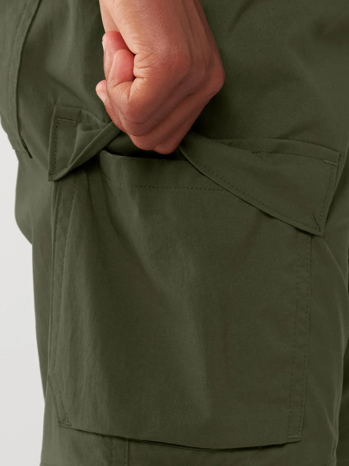 Штаны превращаются в шорты с помощью зажимов для бедер, окрашенных для простоты повторного прикрепления