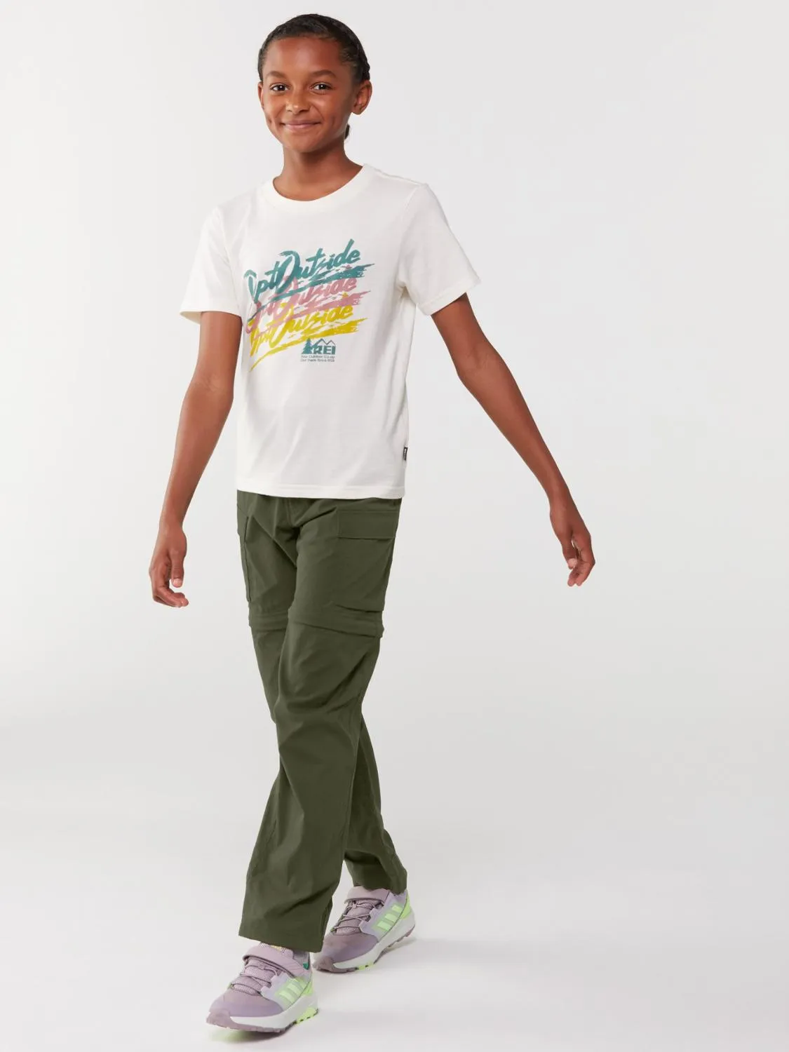 Когда тропа становится круче, а день теплеет, детские конвертируемые брюки REI Co-op Sahara справляются с этим быстро и легко. Застёжки молний с цветовой кодировкой обеспечивают мгновенный переход от брюк к шортам!
