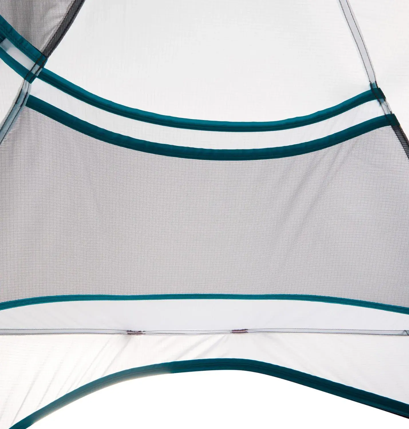 Внутренние натяжные полки обеспечивают прочность и место для хранения, чтобы поддерживать порядок в палатке; снаряжение можно хранить на уровне выше пола, используя внутренние сетчатые карманы