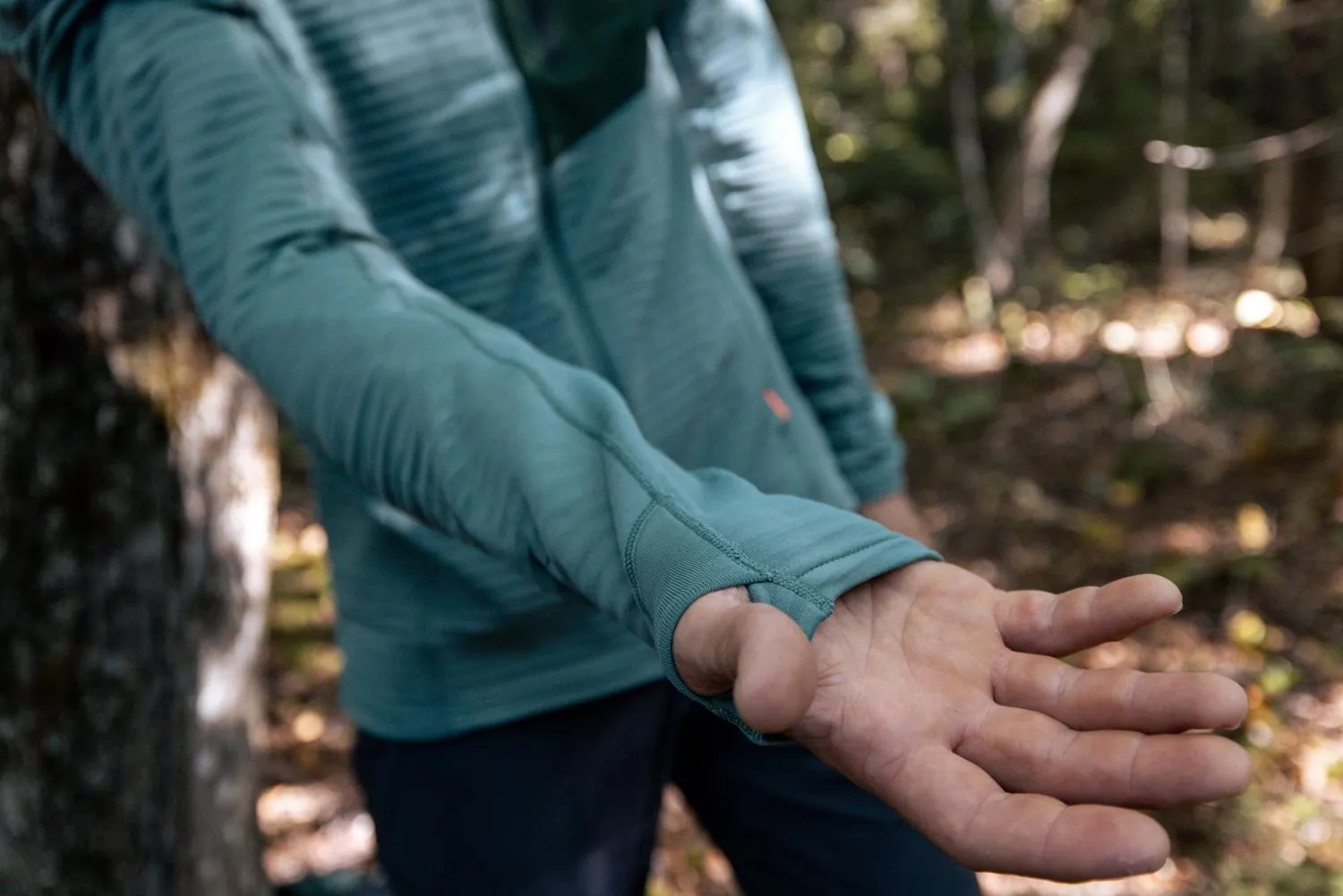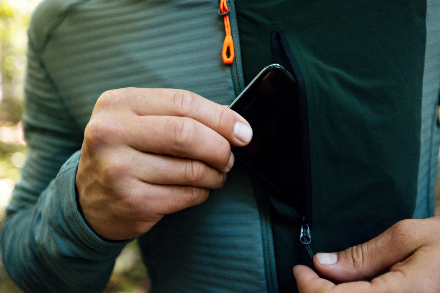 Гладкая внешняя поверхность делает куртку идеальной для ношения под влагонепроницаемой оболочкой