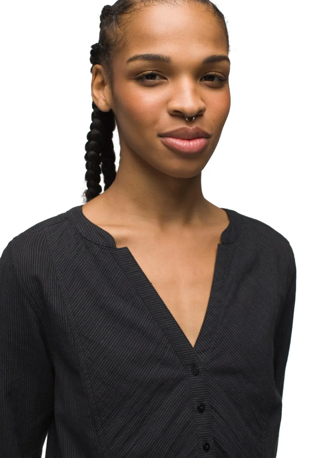 Обычная блузка с изюминкой, женская блуза prAna Katya с длинными рукавами имеет специальные застежки для рукавов, чтобы вы могли регулировать их в зависимости от переменчивости облаков в течение дня и неожиданных (но всегда желанных) солнечных лучей.
