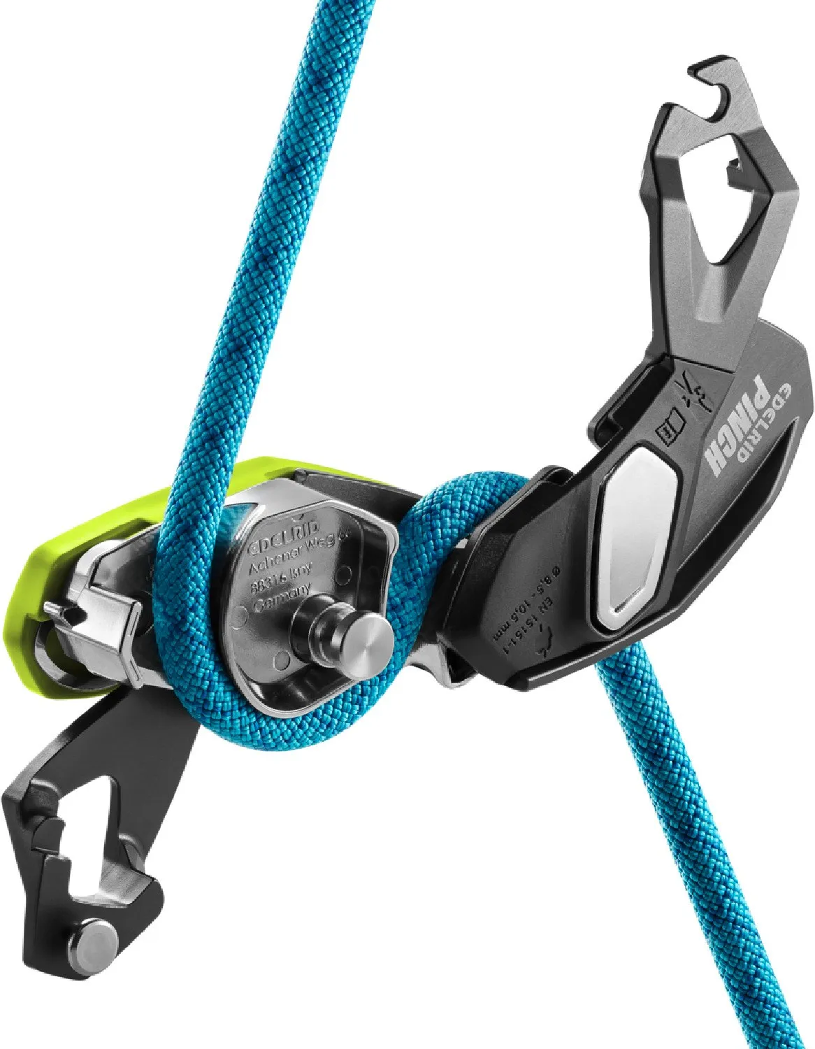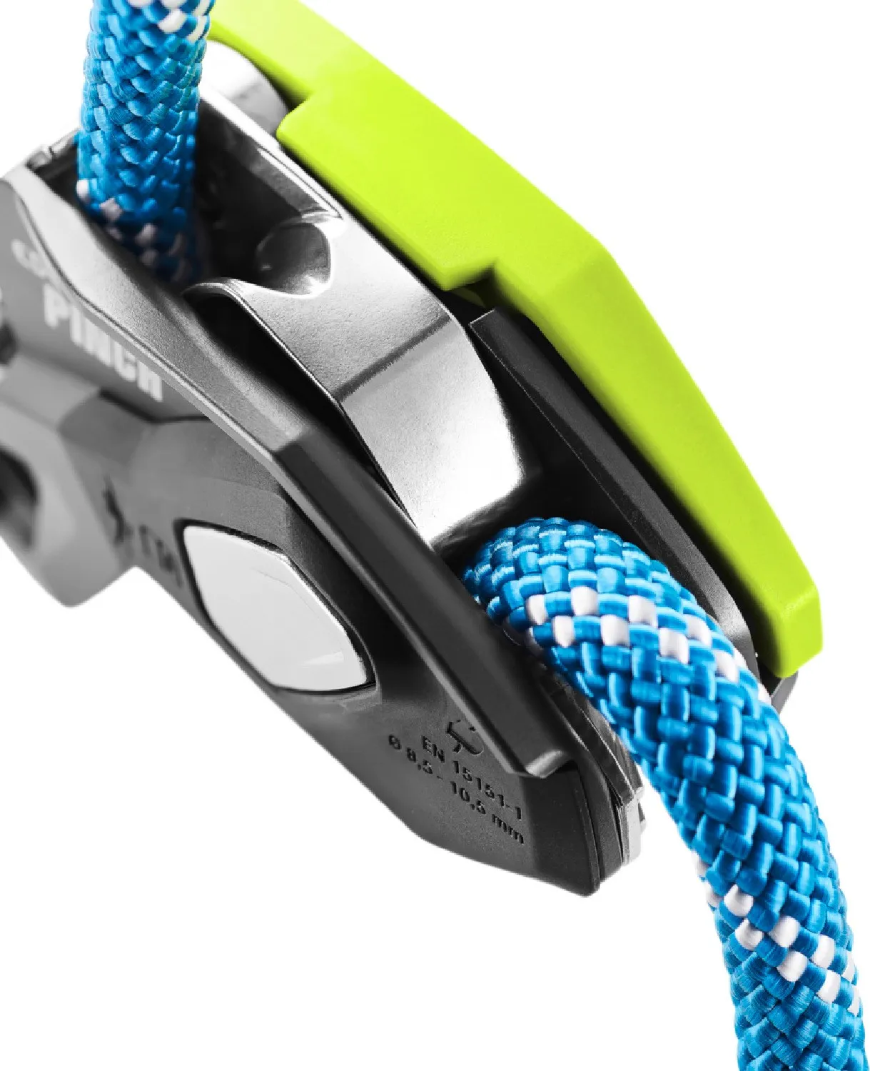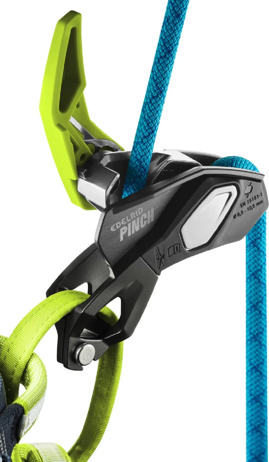 Универсальное механическое устройство страховки с торможением с помощью кулачка, страховочное устройство Edelrid Pinch также предлагает возможность прямого подключения к вашему страховочному петле, чтобы исключить риск перекрестной нагрузки.