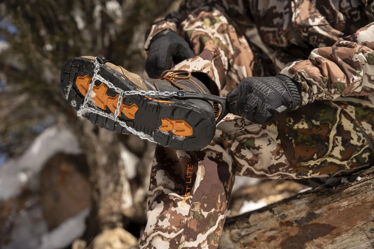 Дизайн в виде лестницы обеспечивает сцепление от пятки до носка и улучшает сцепление на упакованном снегу