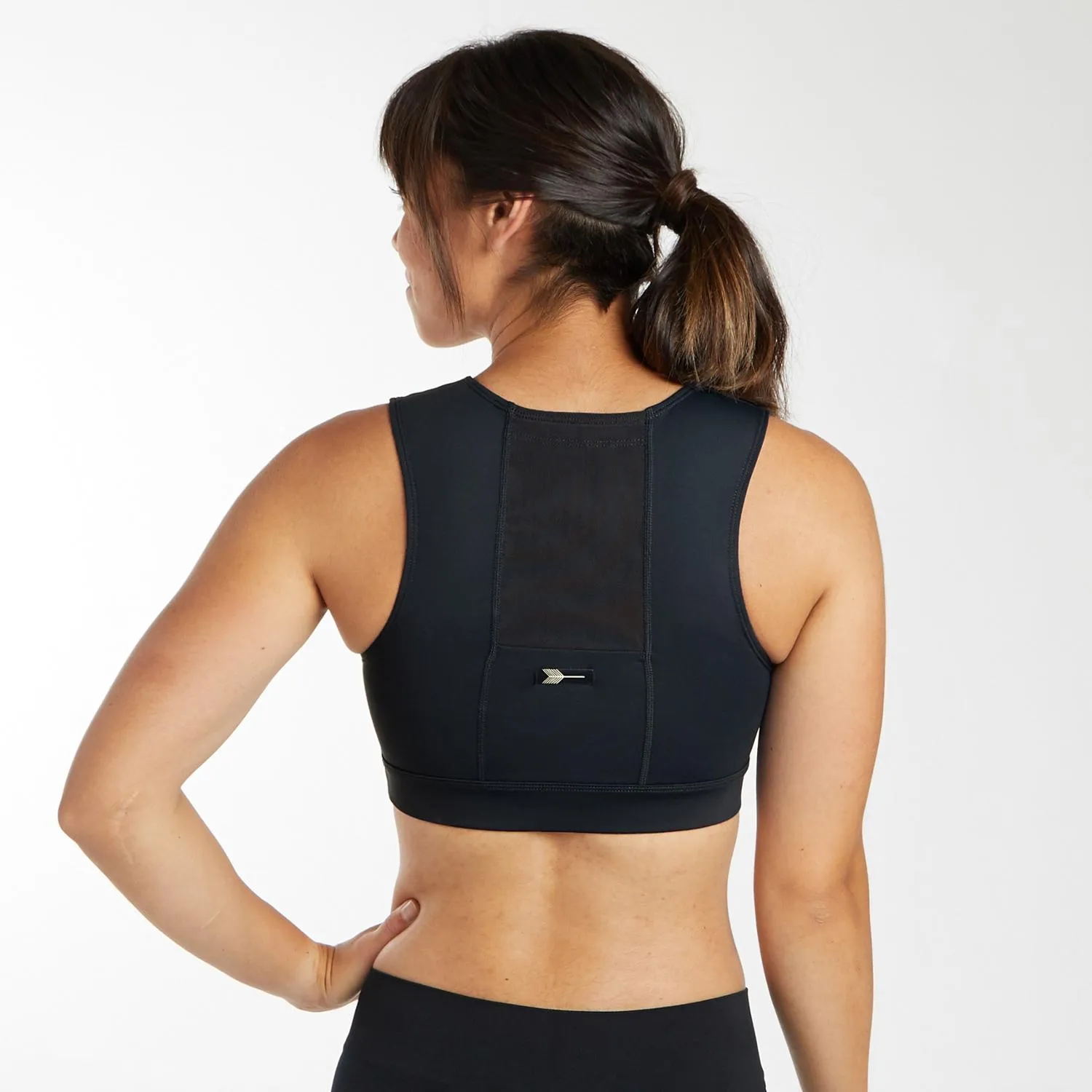 Вдохновленная ультрамарафонцами, которые сталкивались с проблемой, когда ремни обычного спортивного бюстгальтера врезались в плечи под гидраторными рюкзаками, бюстгальтер Oiselle Flyout был разработан для обеспечения лучшего хранения и поддержки.