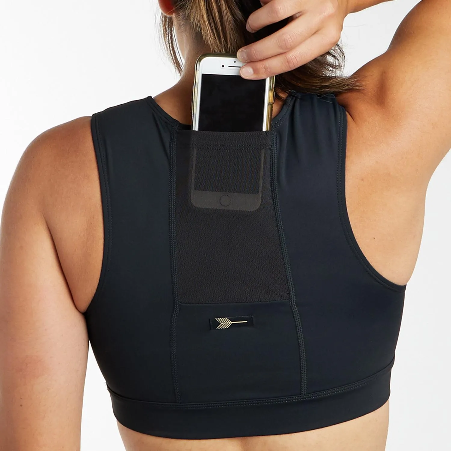 Карман на спине для телефона выполнен из сети Power Mesh, что делает его безопасным и легкодоступным