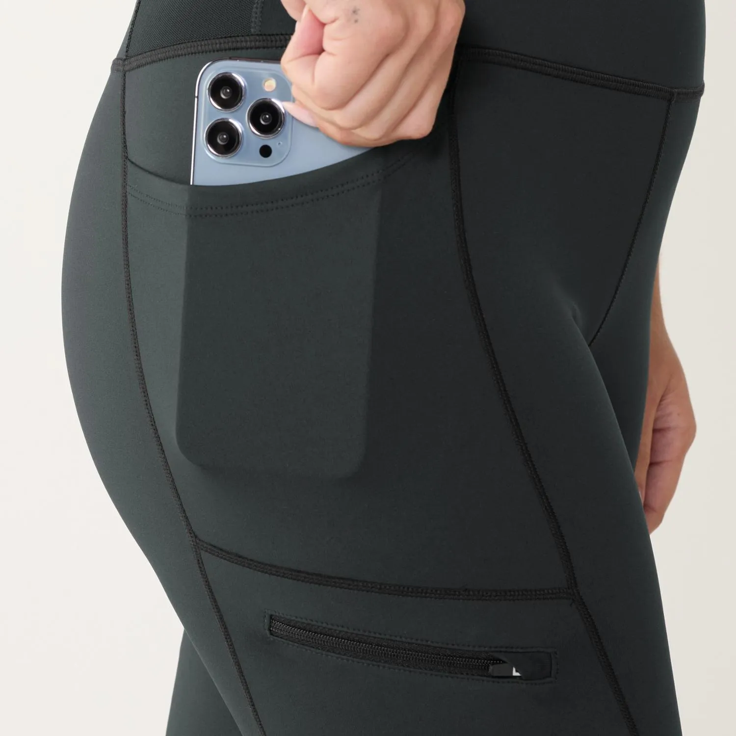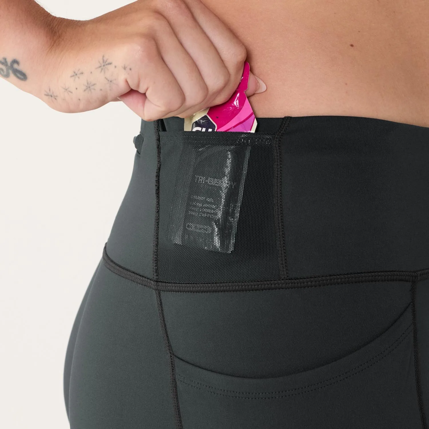 Высокая талия включает как карманы из ткани Nyelle Mighty Mesh, так и безопасный задний карман на молнии