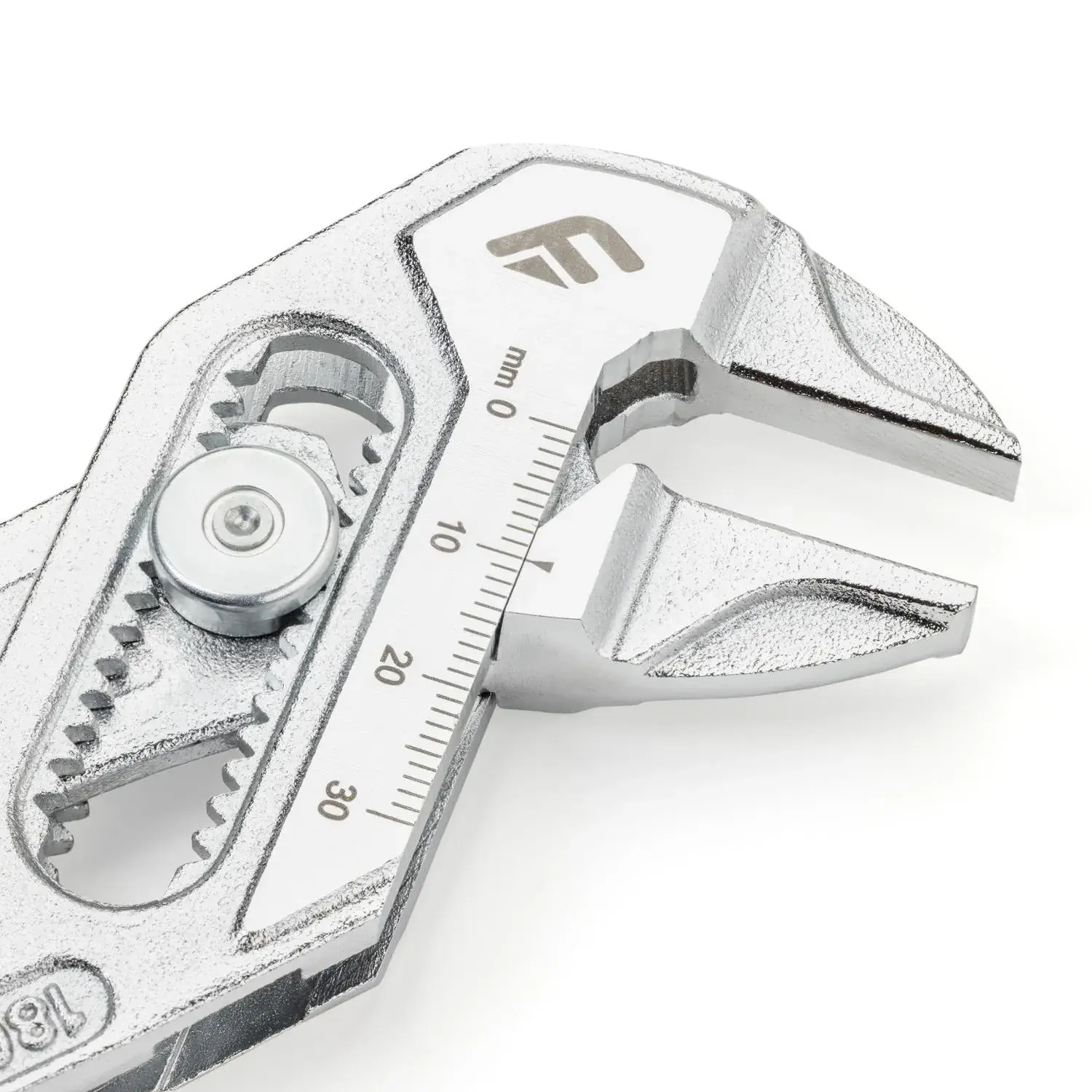 Параллельные зажимы, губки с зажимом подходят для любой гайки диаметром до 1-1/4 дюйма (35 мм) для быстрой работы с традиционными крепежами. Эффективно использовать для верхних крышек вилки, портов прокачки тормозов, гайок осей, педалей и многого другого. Пружинная кнопка для быстрого регулирования зажима позволяет быстро настраивать открытие губок. Гладкая поверхность, не оставляющие следов губки предотвращают повреждение поверхностей. В действии сила зажима в руках пользователя помогает предотвратить выскальзывание инструмента и округление краев плоских гаек, как это может сделать традиционный ключ с закрытым концом. Двухсторонняя матричная шкала с лазерной гравировкой помогает обозначить открытие зажима и определить размер крепежа. Компактный кузов из кованной стали длиной 7 дюймов (180 мм) с двойным покрытием и текстурированной резиновой рукояткой. Может заменить целый набор метрических и SAE ключей и головок до 1-1/4 дюйма (35 мм), экономя место в дорожных и домашних наборах. Компактный размер подходит для точной работы в ограниченных пространствах и дополнит профессиональные портативные наборы и домашние мастерские.